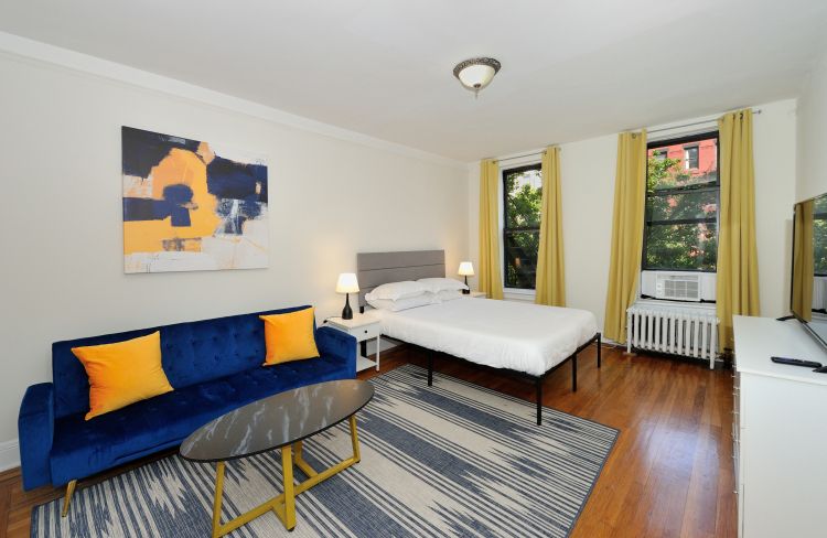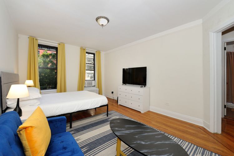 This Upper East Side gem features three thoughtfully designed bedrooms. The master bedroom includes a queen-size bed, while the second and third bedrooms each offer a comfortable queen-size bed. Each room is designed to maximize space and light, creating a cozy retreat for relaxation.