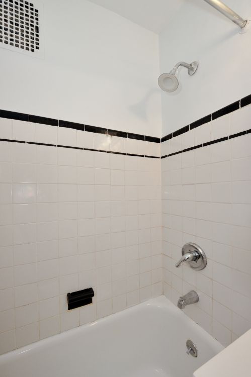 The well-appointed bathroom caters to all your needs with both a spacious bathtub and a standup shower, providing a touch of sophistication and comfort.