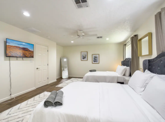 🌵 Bedrooms: One queen bedroom and one extra-large suite with two queen beds.