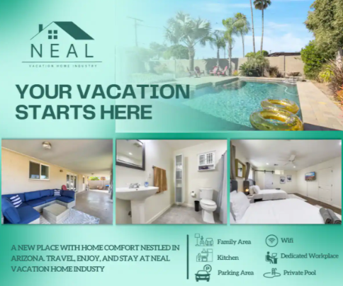 Experience the comfort and elegance of our centrally located 3BR/2BA house in the Biltmore neighborhood. Featuring spacious bedrooms, a fully equipped kitchen, a beautiful pool, and modern amenities, this home is your perfect retreat in Arizona. Book now and enjoy the best of Biltmore living!