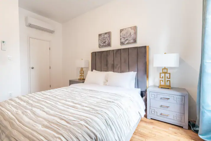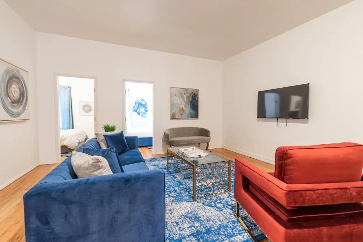 Boasting three amazing bedrooms with 3 queen beds and a well-appointed bathroom, this residence perfectly blends style and comfort. The spacious living room creates a warm and inviting atmosphere with contemporary furniture. The gorgeous white kitchen offers a clean and modern aesthetic. Enjoy a beautiful cityscape with views from the front of the building as well as the tranquility of the back.