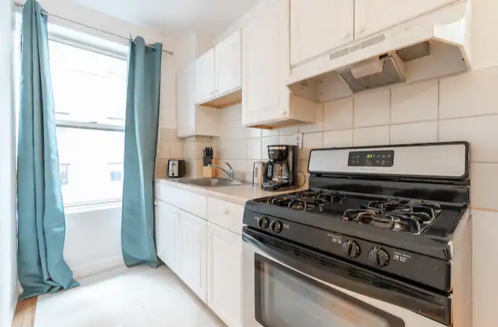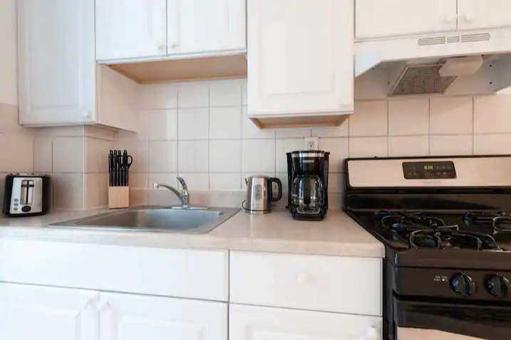 ⭐ Modern Kitchen: Clean white kitchen equipped with essential appliances