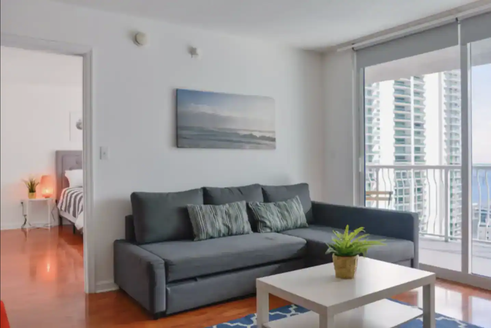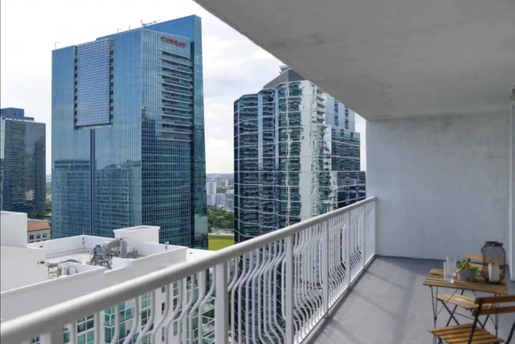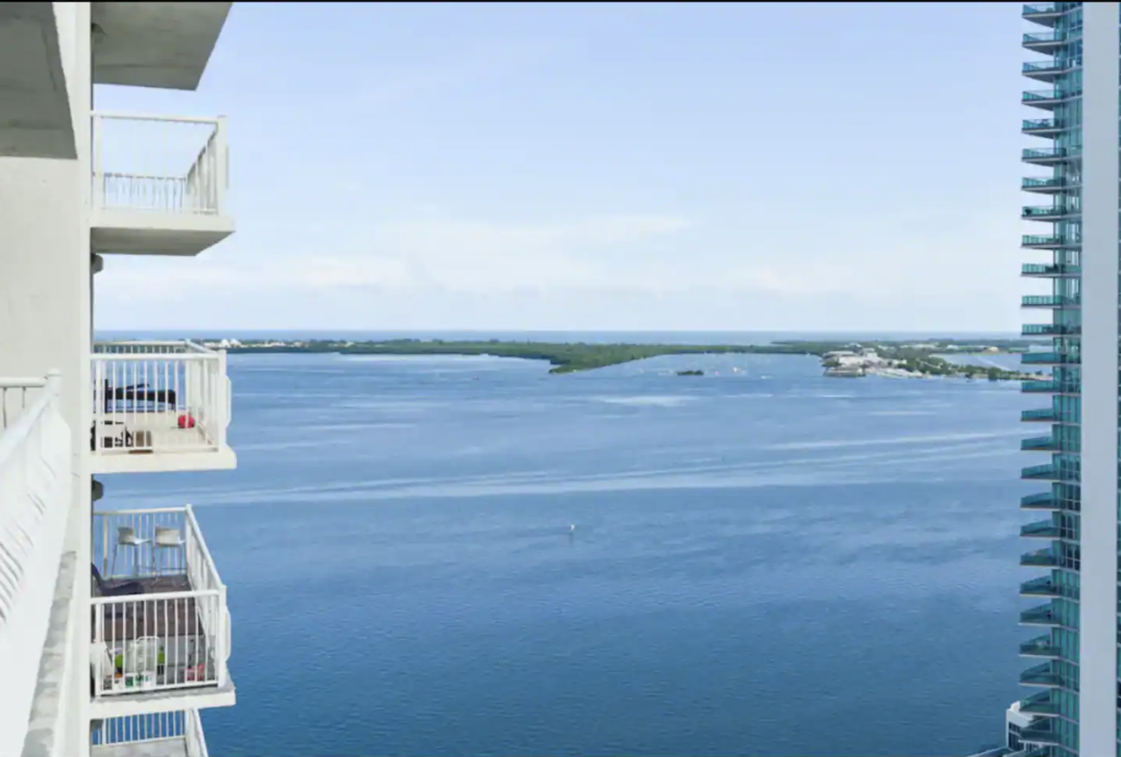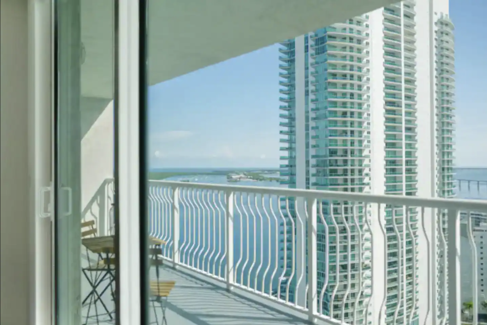 The beautiful balcony offers stunning views of Biscayne Bay, perfect for enjoying Miami's sunny weather.