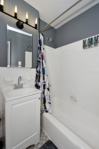 A clean and well-appointed bathroom completes this charming studio, offering convenience and comfort.
