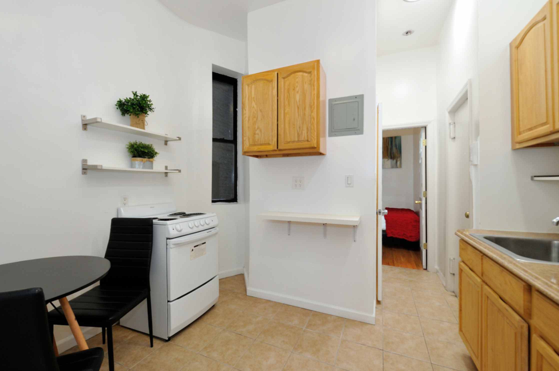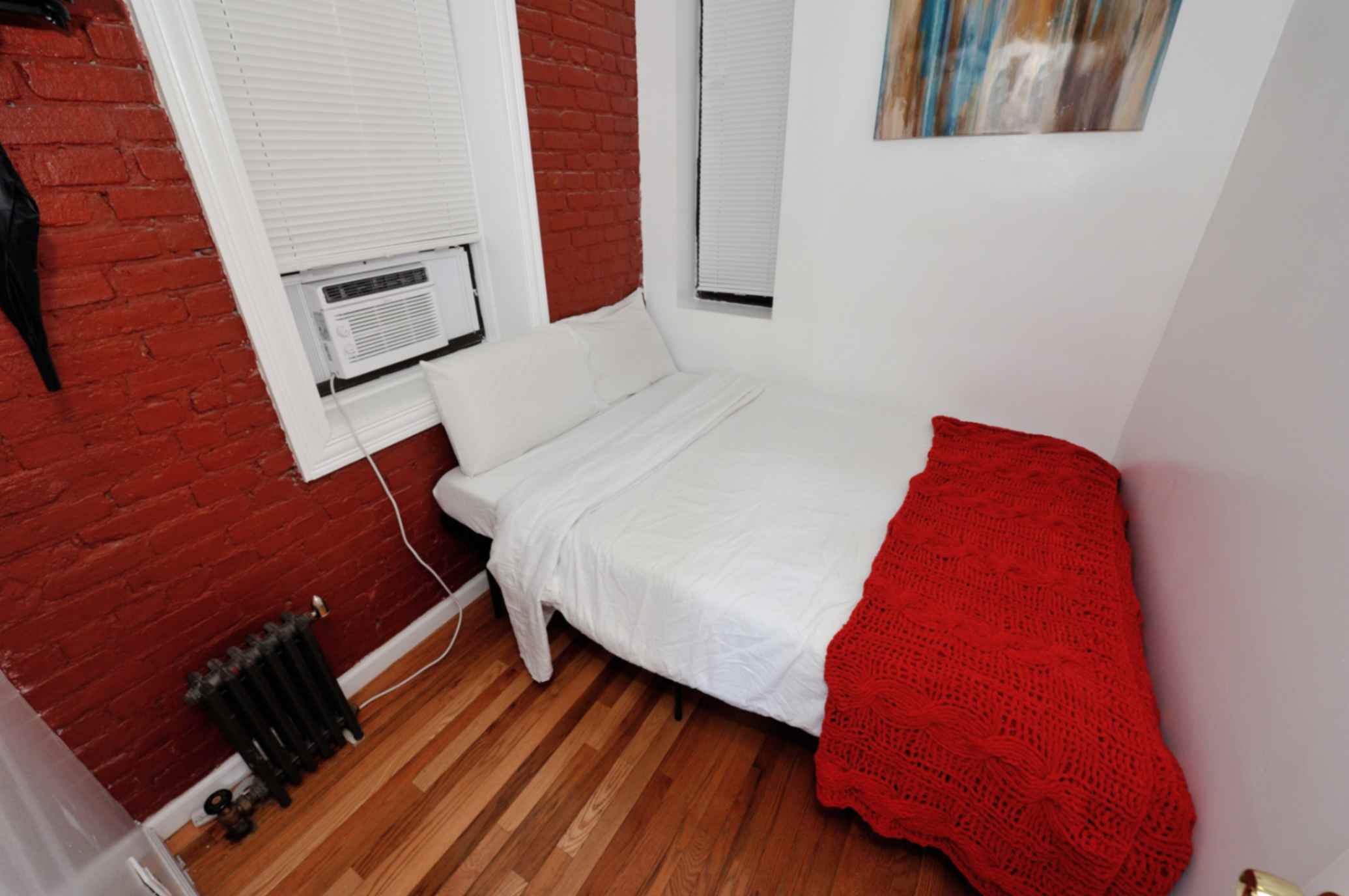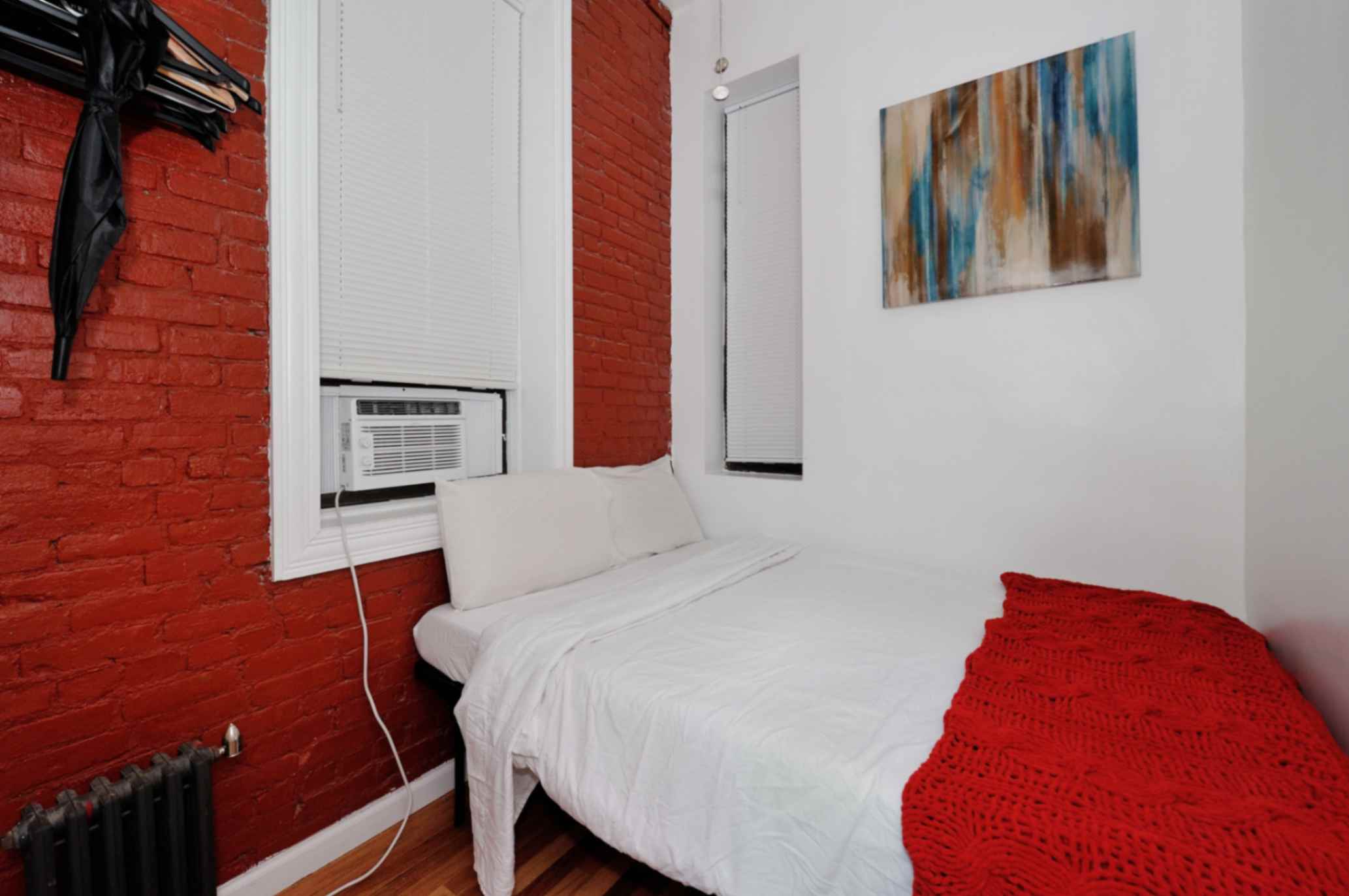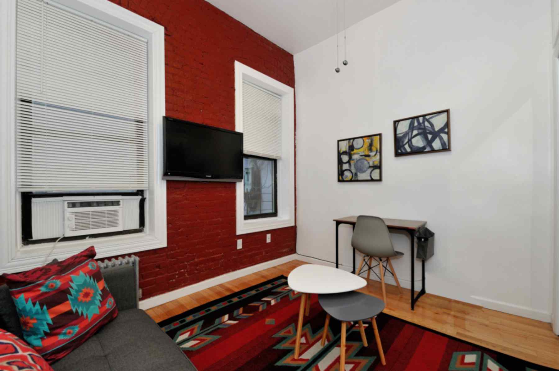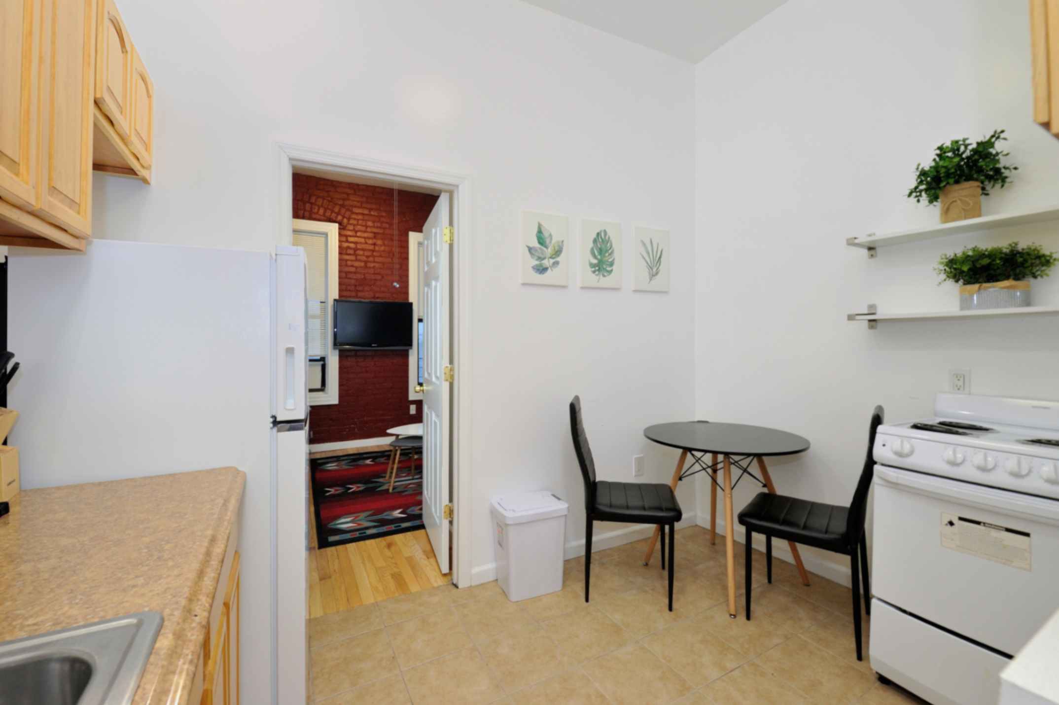 This charming apartment features one spacious bedroom with a full-size bed, offering a cozy haven for relaxation. Exposed brick walls add character and a touch of urban charm.