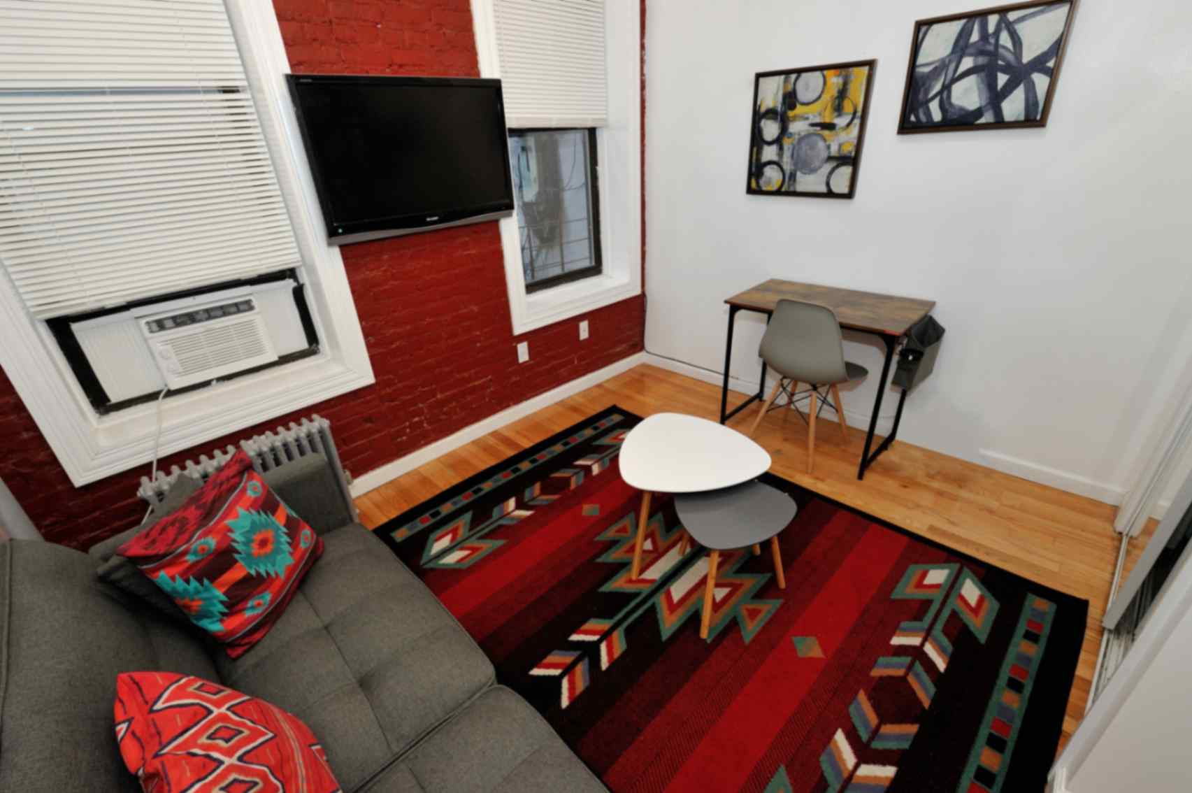 🌟 Exposed Brick Walls: Adds character and charm to the bedroom and living room