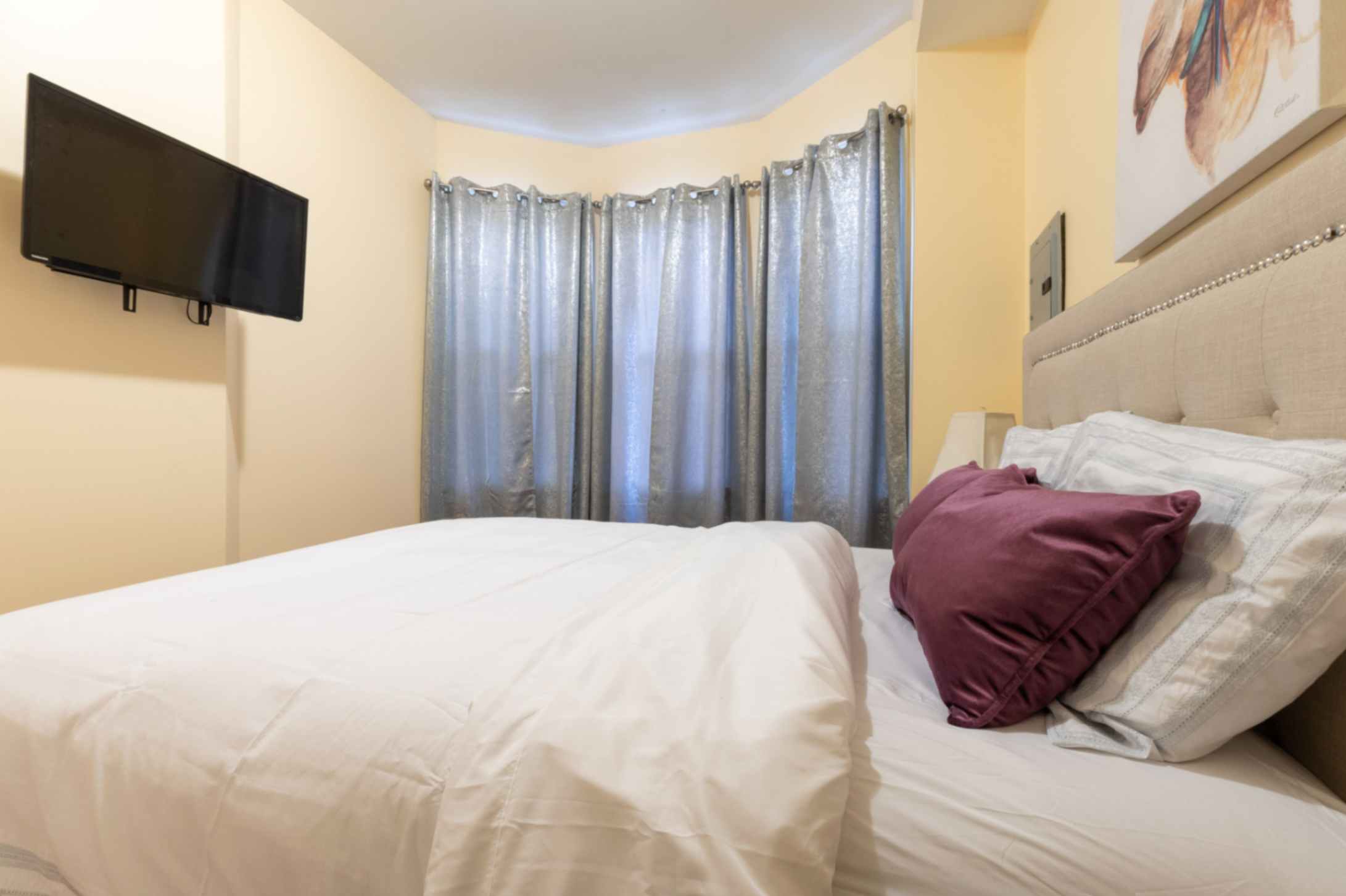 Each bedroom features a comfortable queen-size bed, thoughtfully chosen furnishings, and ample storage for your belongings. Flat-screen TVs in each room provide endless entertainment options.