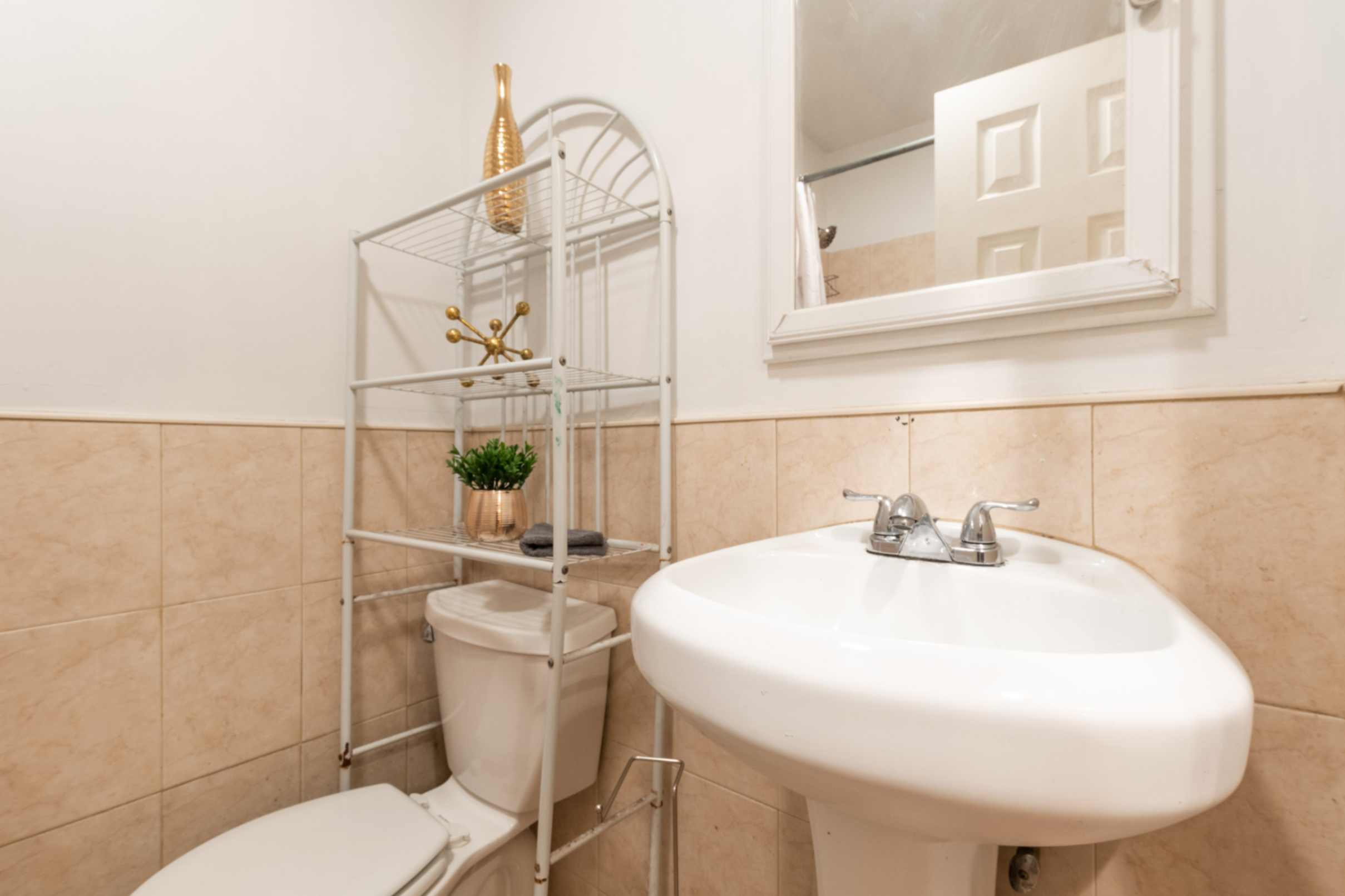 The unit features a modern bathroom, providing all the amenities needed for a comfortable experience.