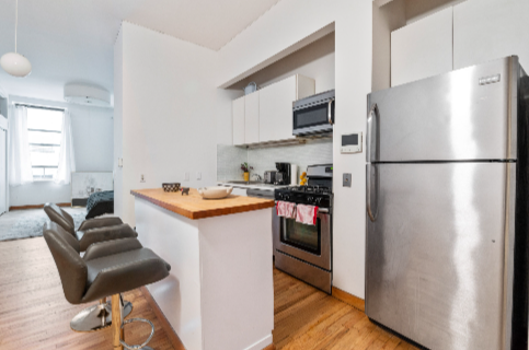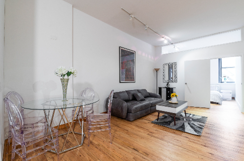 Natural light floods the two front rooms, creating a bright and cozy atmosphere. Enjoy dynamic urban views while relishing the privacy and tranquility this unique space offers. The loft’s prime location provides easy access to laundromats, a local market, and iconic landmarks such as the World Trade Center, Battery Park, Brooklyn Bridge, and Wall Street. Just half a block from the subway station, you'll have the city's cultural and recreational offerings at your doorstep.
