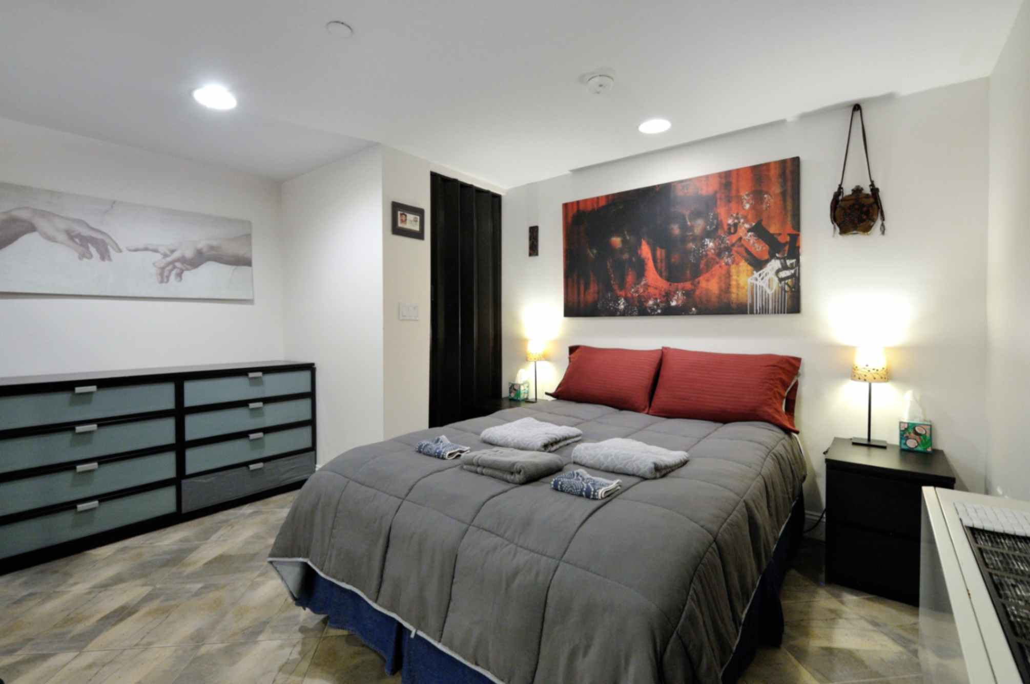 ⭐️ Queen-Sized Bed: Comfortable sleeping arrangement for a restful night.