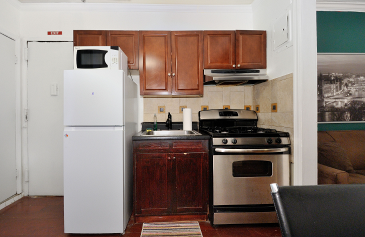 Discover the charm of urban living in this second-floor apartment located in the bustling heart of Midtown West, New York. Just a block and a half from the Port Authority Bus Terminal, and in close proximity to Times Square, Hell's Kitchen, and the Lincoln Tunnel, this two-bedroom gem boasts contemporary elegance. The exposed brick walls in both the bedroom and living room add an authentic touch of urban chic, creating a stylish and comfortable retreat. With its modern amenities and prime location, this apartment is perfect for those seeking a dynamic and accessible city lifestyle.