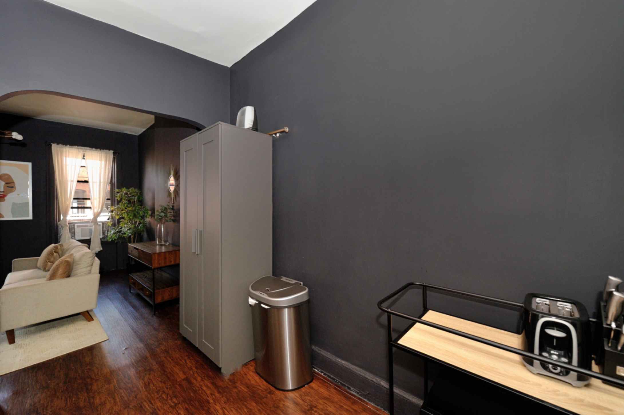 The living area is a chic and intimate space, perfect for relaxation. With carefully curated aesthetics, this space captures the essence of style and elegance, making it an inviting enclave for unwinding after a busy day in the city.