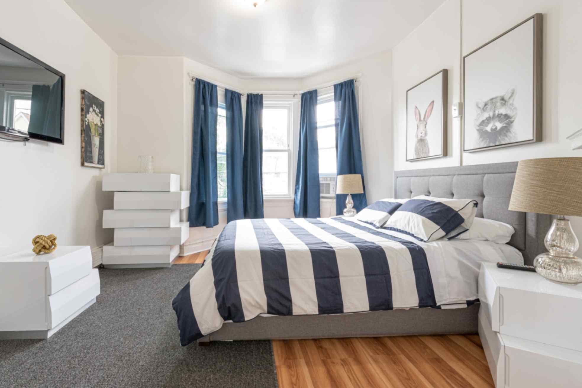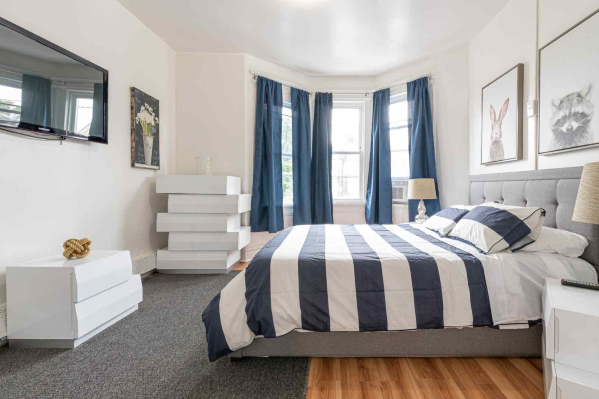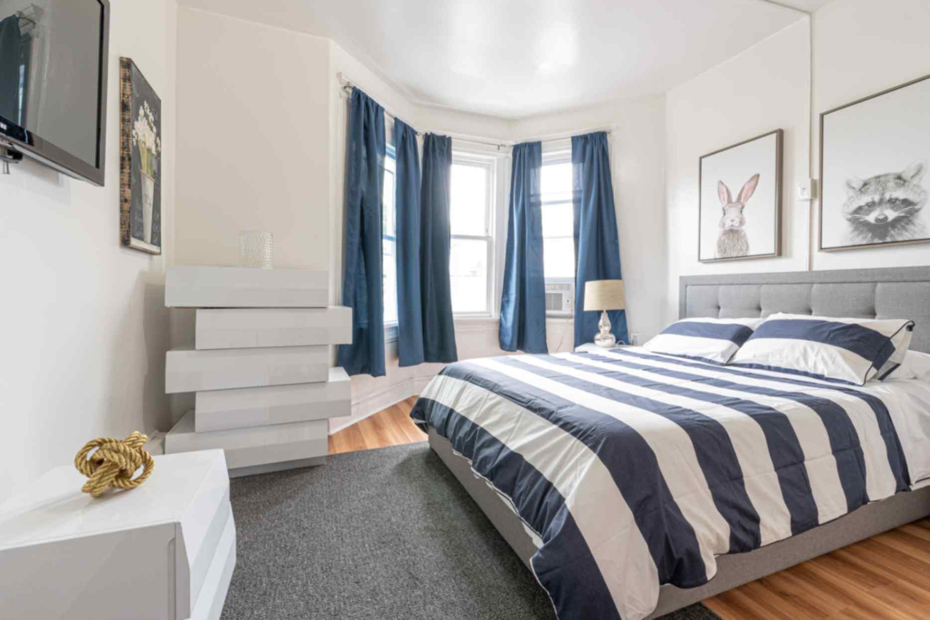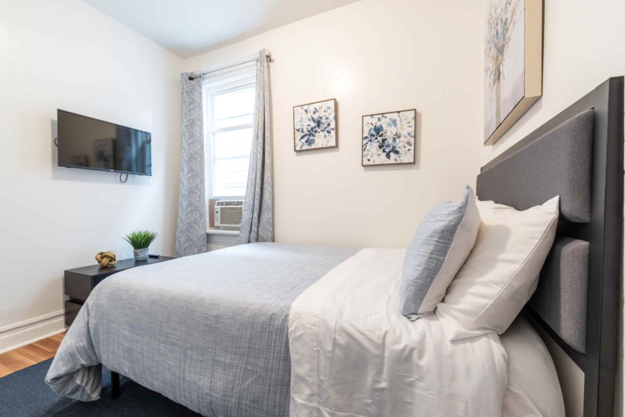 Each bedroom features a comfortable queen-size bed, thoughtfully chosen furnishings, and ample storage with dressers for your belongings. Flat-screen TVs in each room provide personalized entertainment options.