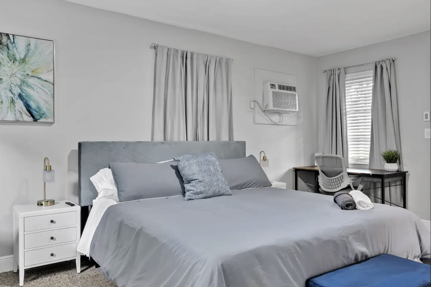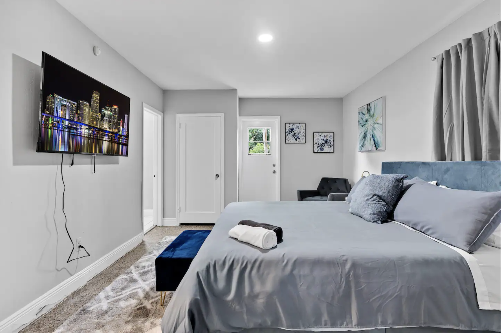 Living Area: Cozy with a King bed, accent chair, and 55" TV with Netflix.