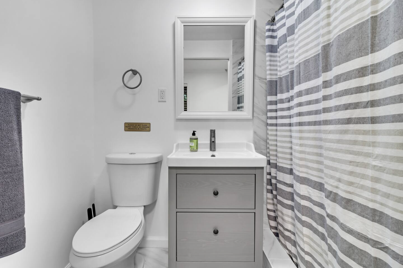 Full bathroom with modern fixtures and fresh towels for your convenience.