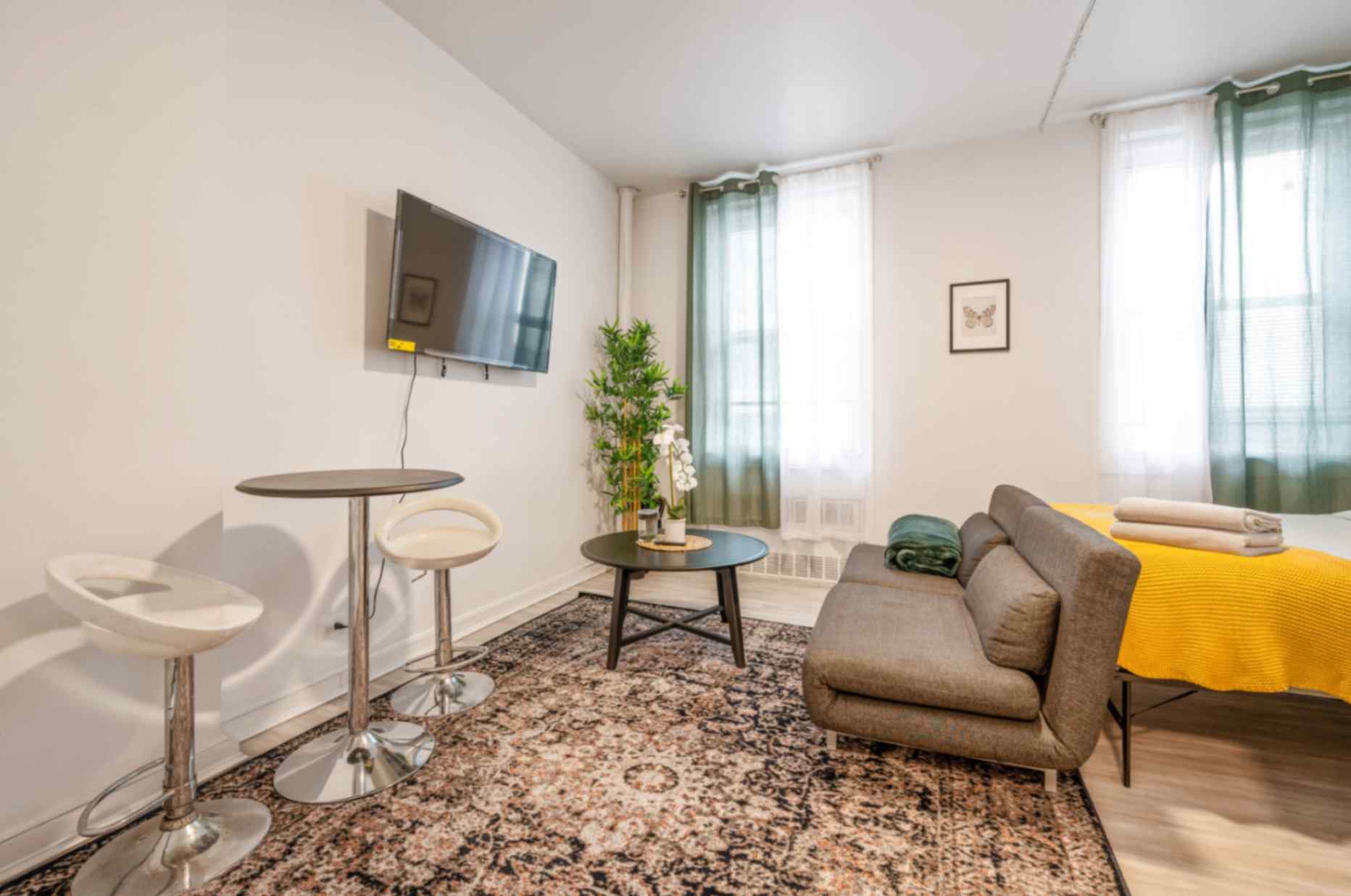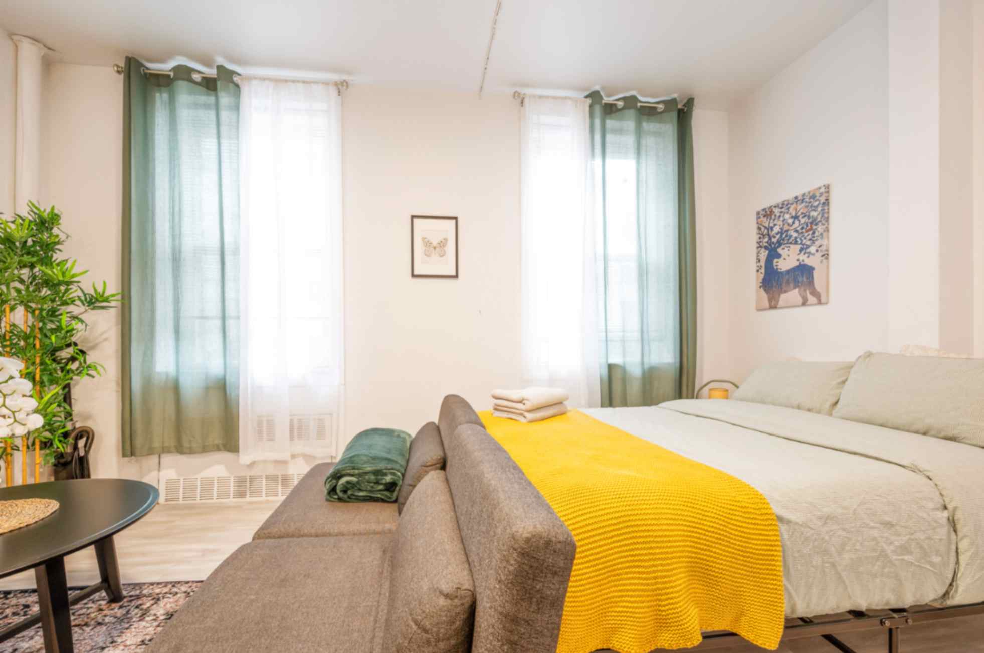 "This studio is quite practical, because despite being a 'small' studio there is still space to socialize and not just lie in bed. It also has the great advantage of having a washing machine in the building, something less to worry about in a city as busy as NY."
