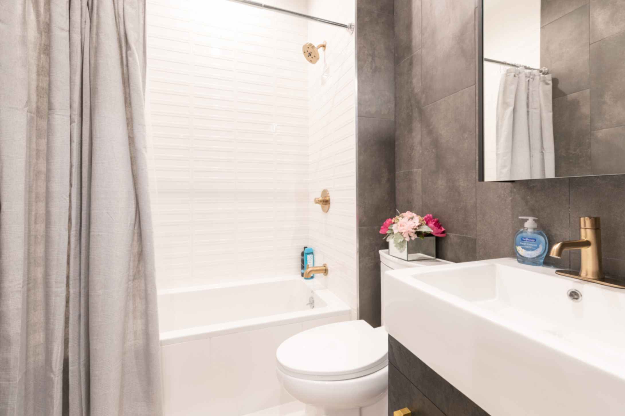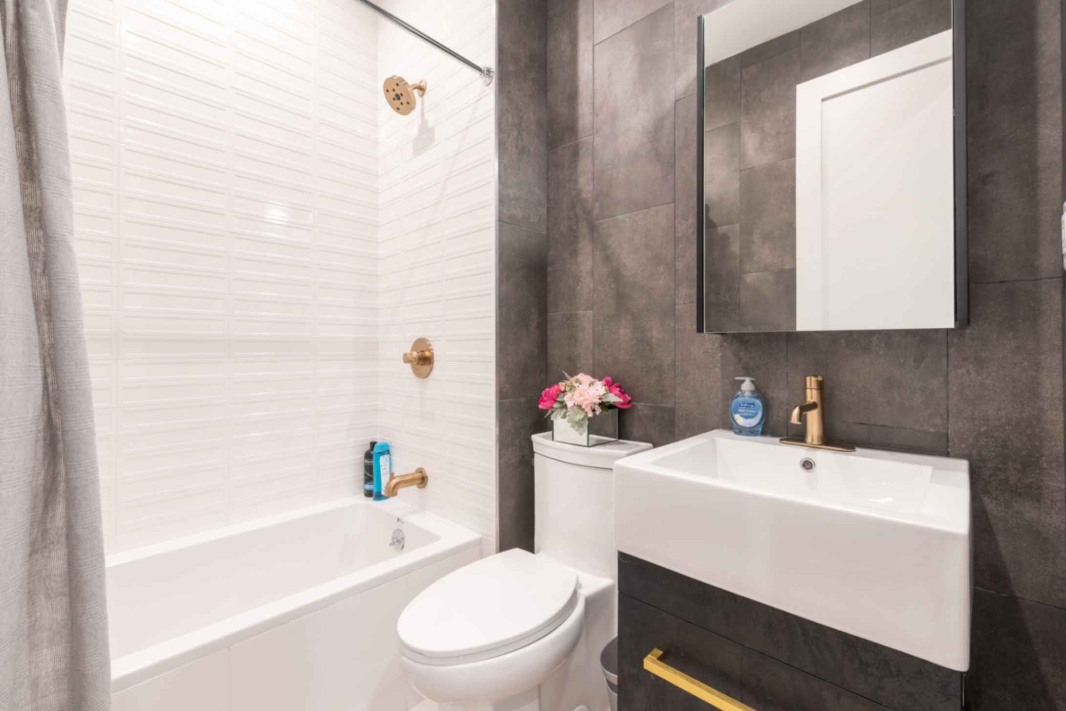 The modern bathroom is well-appointed, providing all the amenities needed for a comfortable experience.
