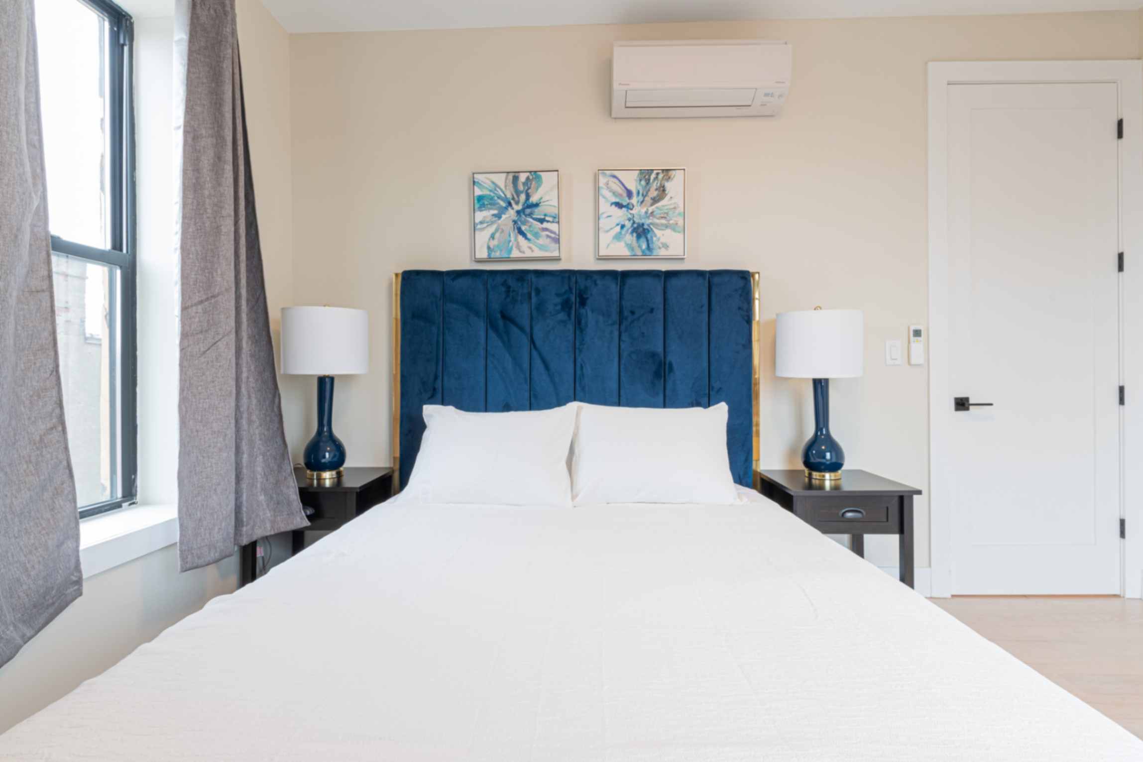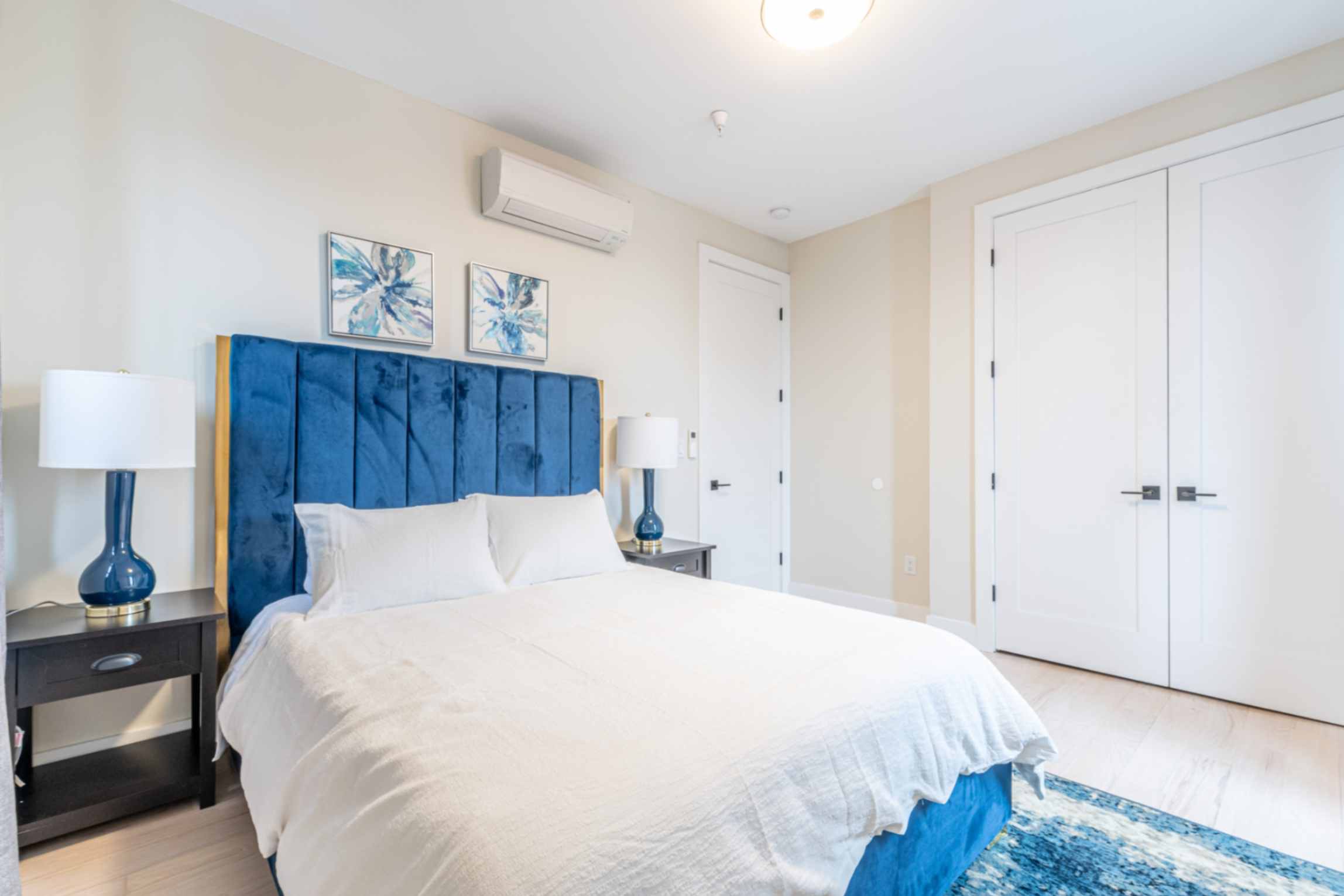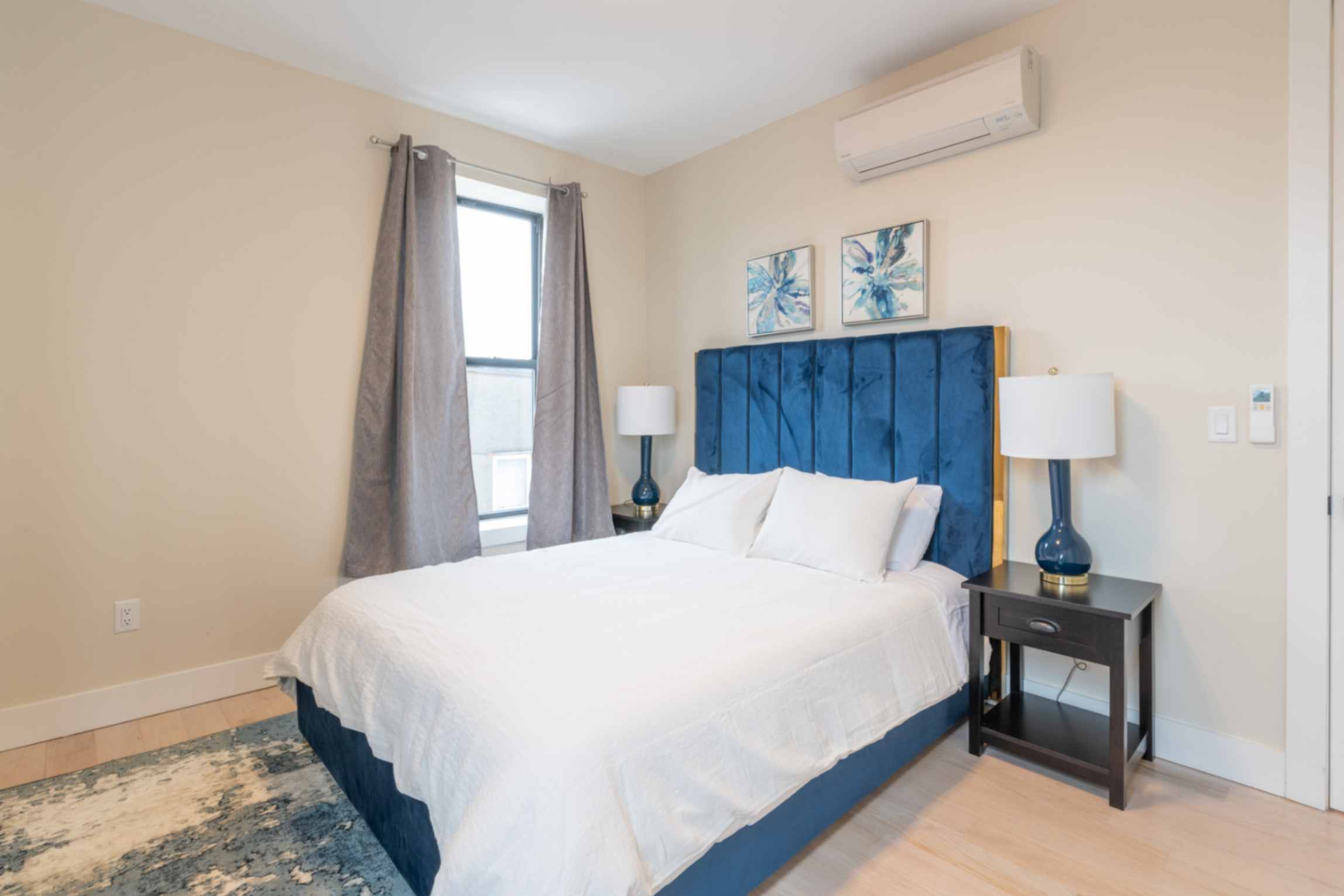 The master bedroom provides a cozy retreat with a comfortable queen-size bed and ample closet space, while the second bedroom offers a full-size bed and its own closet, ensuring restful nights for all guests.