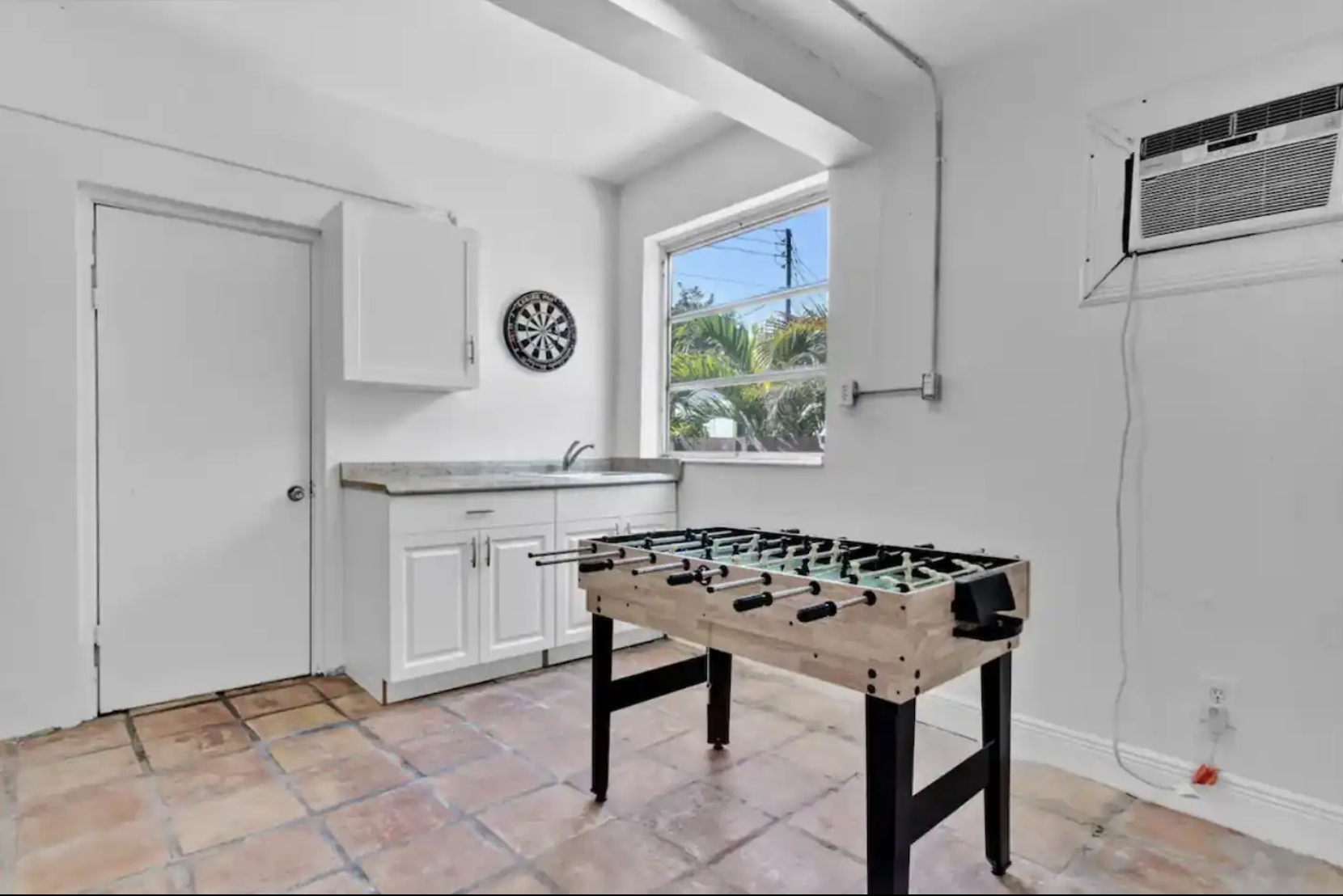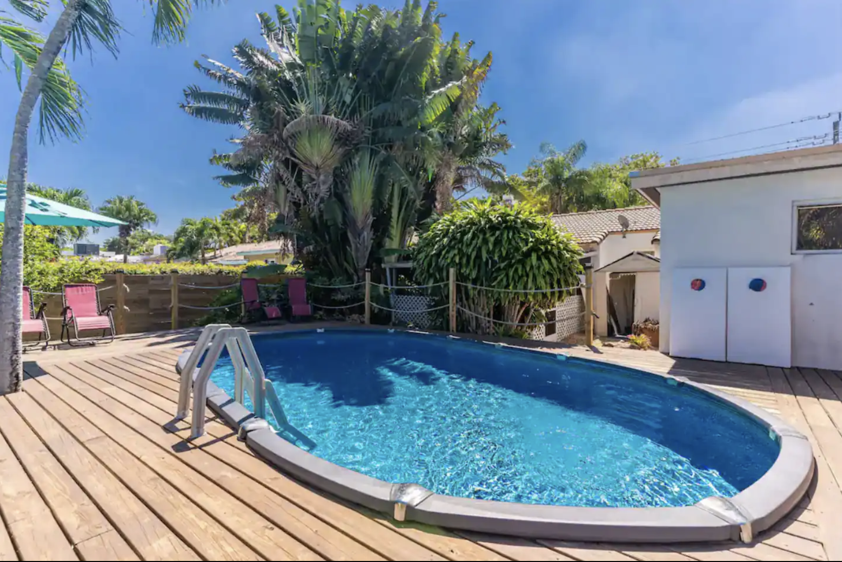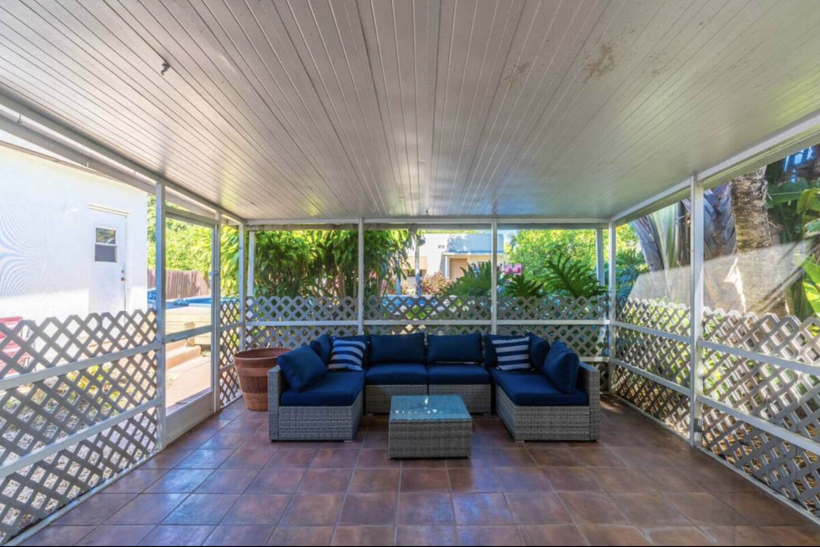 Welcome to our spacious 5 Bedroom, 2 Bath house in exclusive Miami Shores. With a variety of sleeping arrangements including 1 King, 1 Full, 1 Queen, and a Double Full bedroom, it comfortably sleeps 12 guests. Renovated bathrooms add a touch of luxury. Enjoy Netflix on two flat-screen TVs and stay connected with high-speed WiFi. Relax on the pool deck or the covered patio. Have fun in the game room with darts. Laundry facilities and parking for three vehicles are provided. Please note: Two studio apartments on the property have long-term tenants at the rear of the lot.