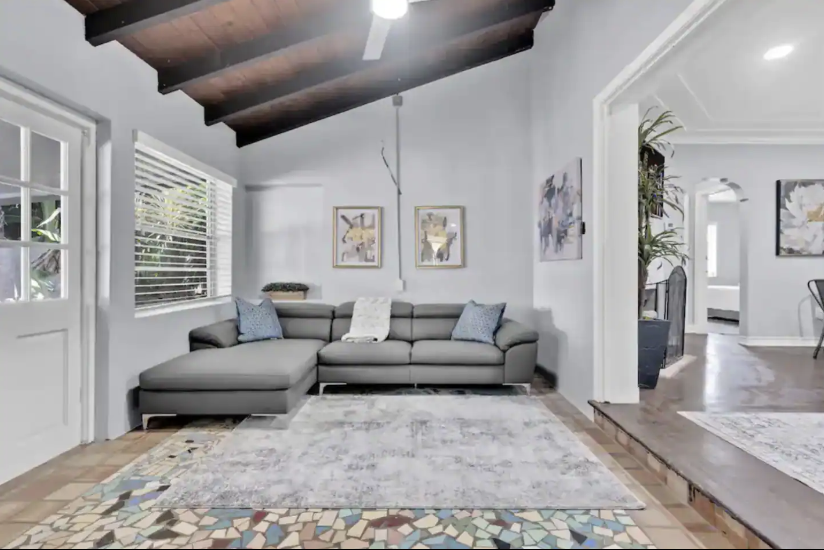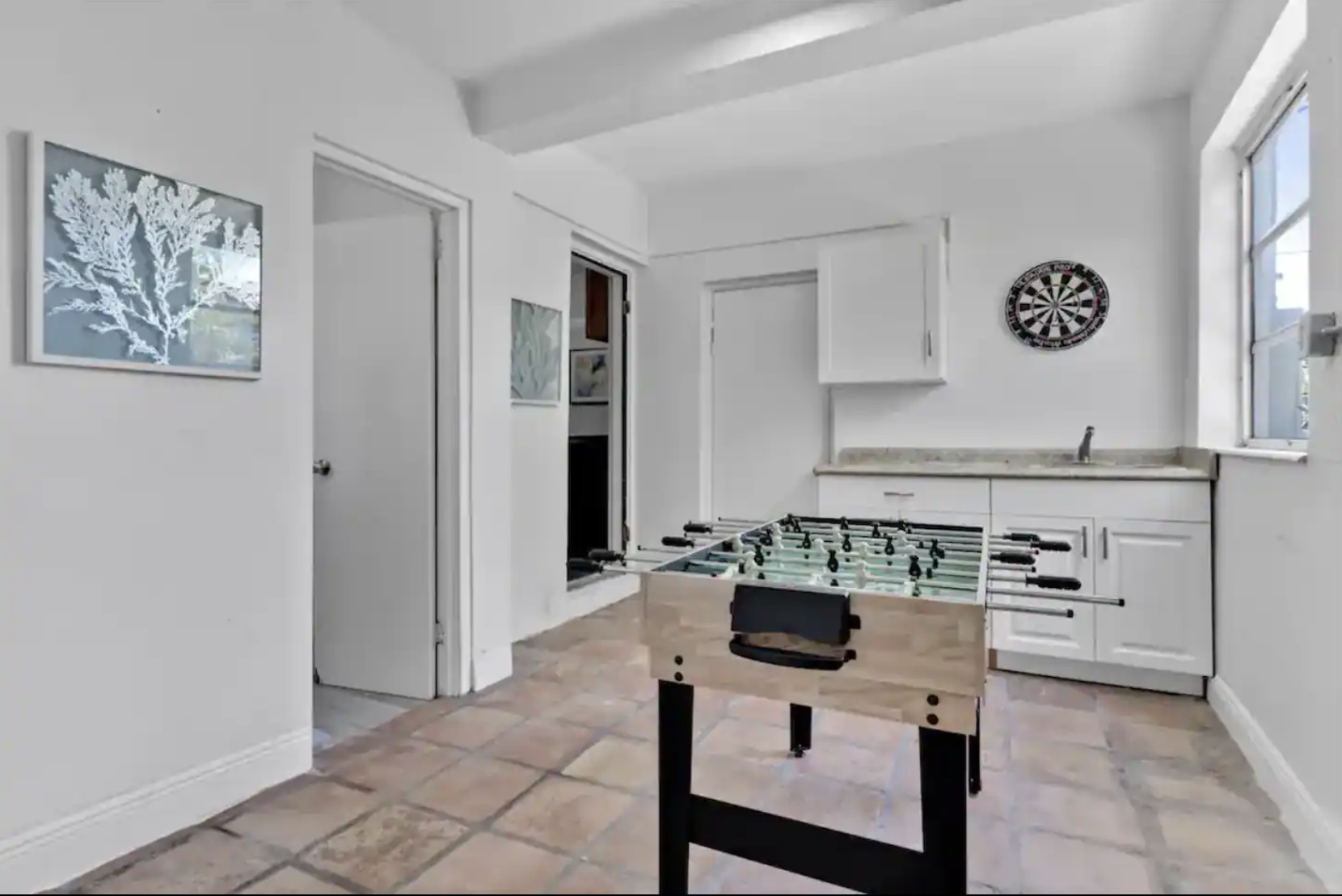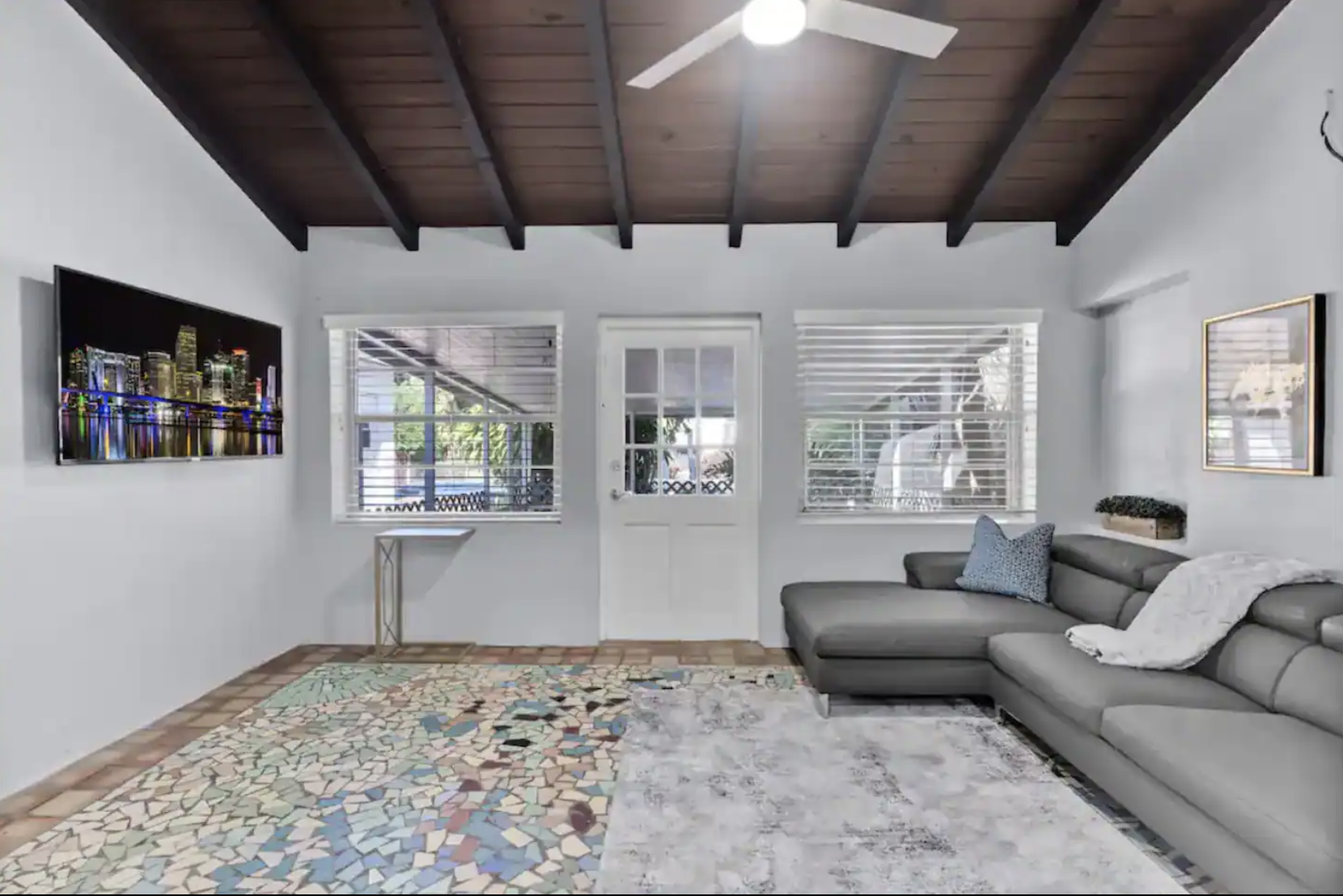 Welcome to our spacious 5 Bedroom, 2 Bath house in exclusive Miami Shores. With a variety of sleeping arrangements including 1 King, 1 Full, 1 Queen, and a Double Full bedroom, it comfortably sleeps 12 guests. Renovated bathrooms add a touch of luxury. Enjoy Netflix on two flat-screen TVs and stay connected with high-speed WiFi. Relax on the pool deck or the covered patio. Have fun in the game room with darts. Laundry facilities and parking for three vehicles are provided. Please note: Two studio apartments on the property have long-term tenants at the rear of the lot.