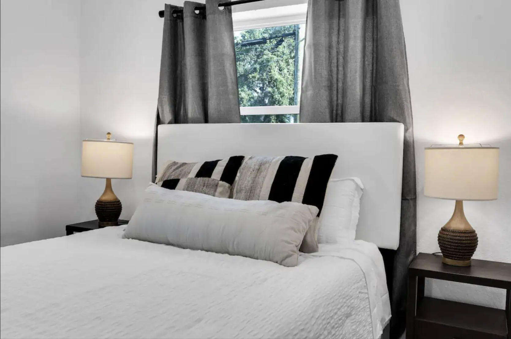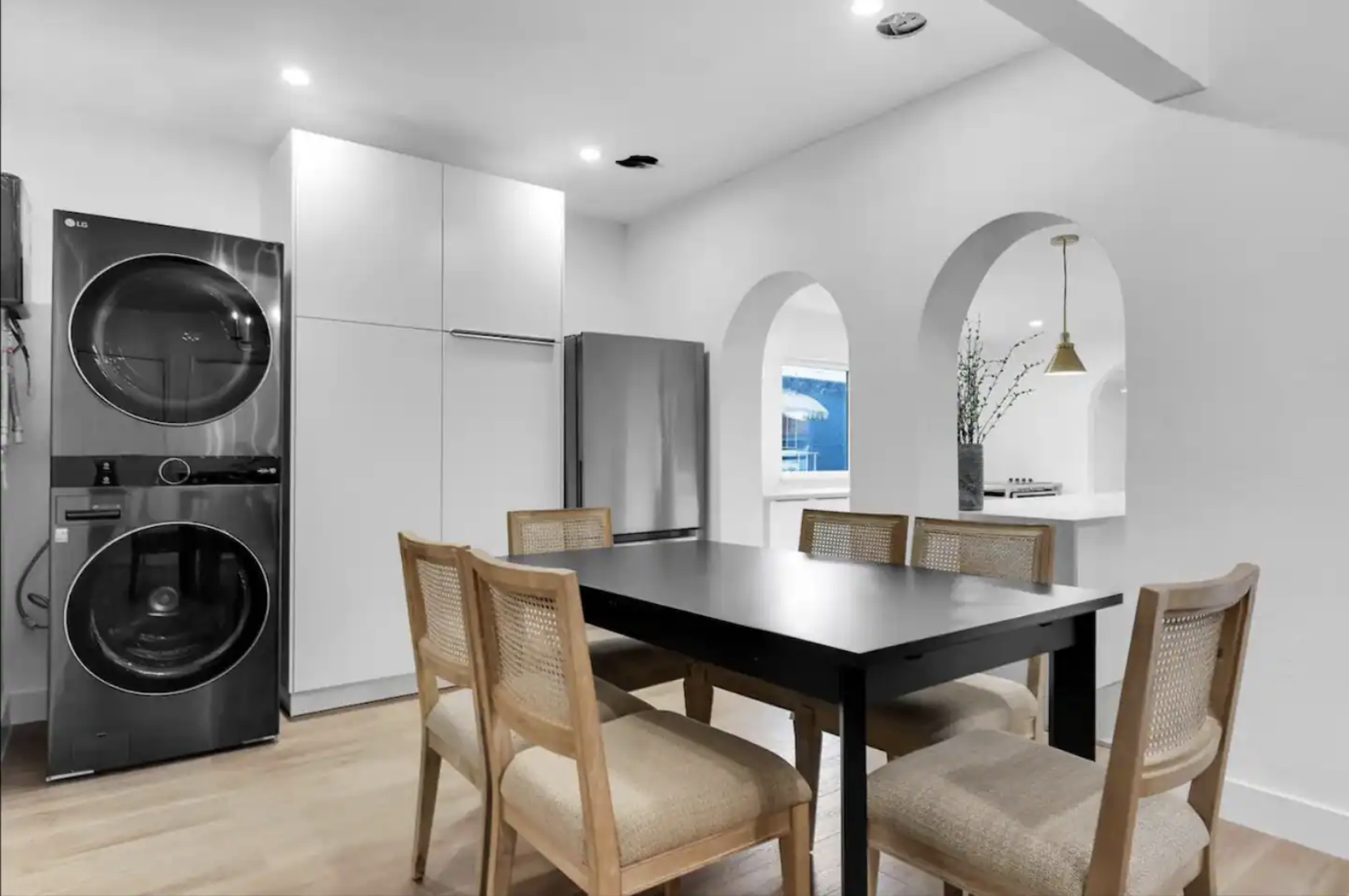 Guests have full access to all amenities, including gated parking for two cars, the pool, BBQ area, and laundry facilities. Check-in is at 4 PM, and check-out is at 10 AM.