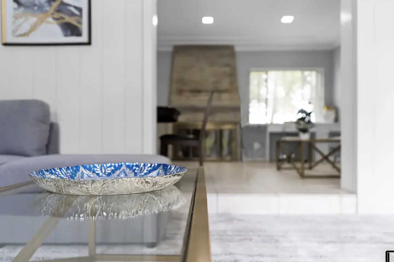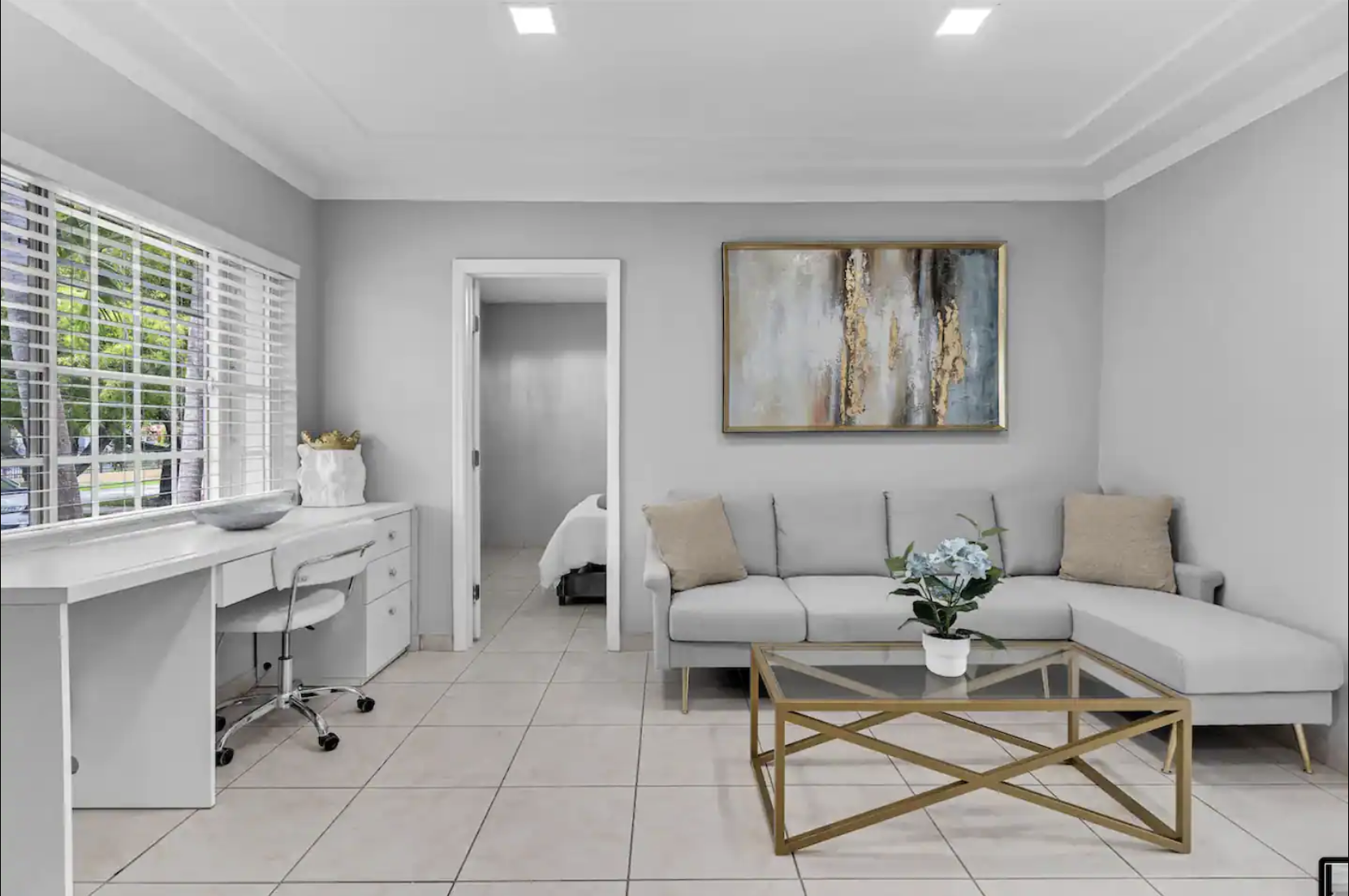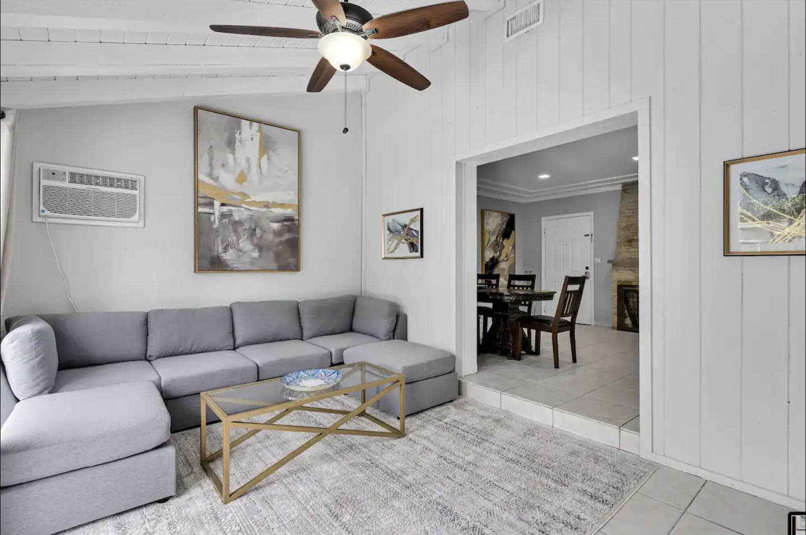 Welcome to our spacious 4-bedroom, 2-bathroom retreat in the prestigious Miami Shores, where luxury meets comfort. This inviting home is designed for memorable gatherings and shared meals, featuring a grand main space with a dining area, faux fireplace, comfortable couch, and a dining table for six.