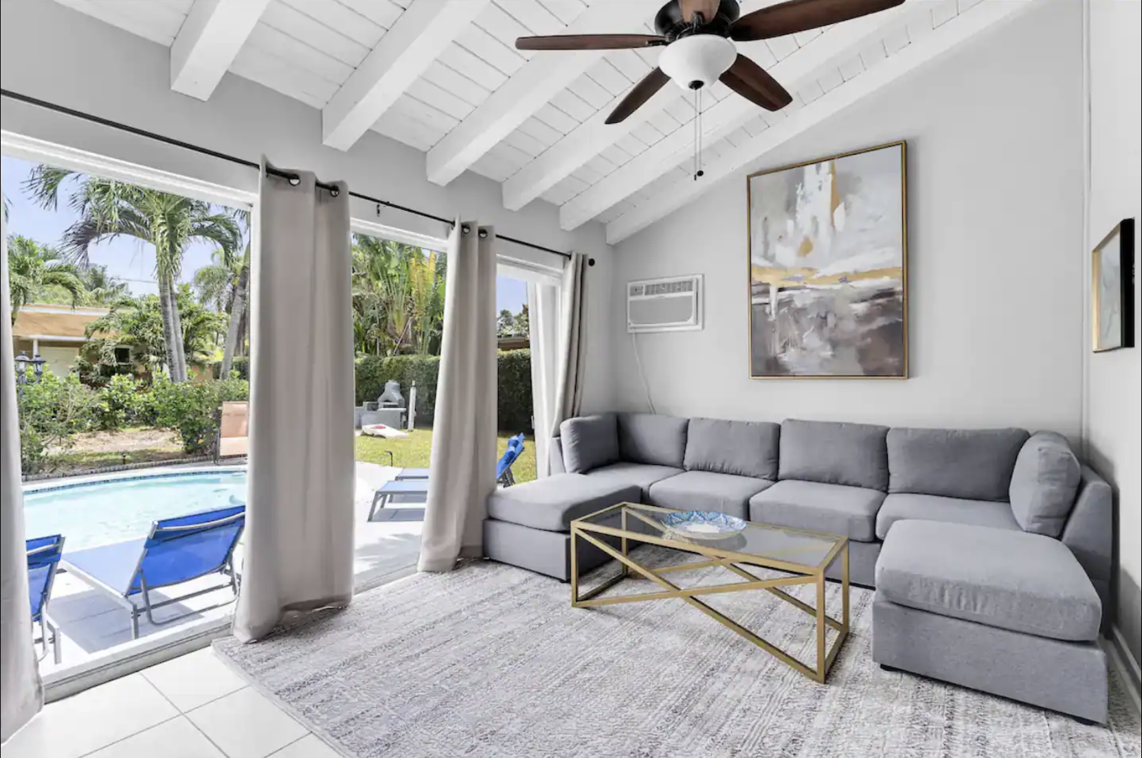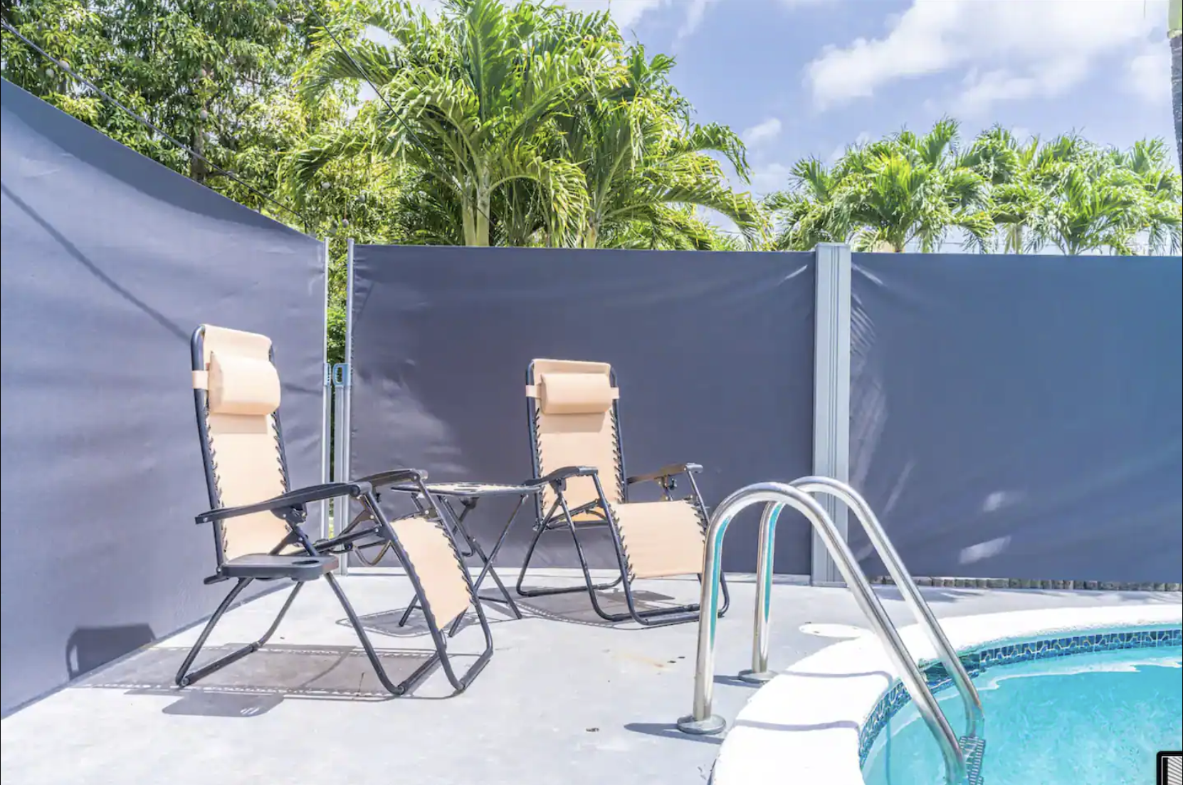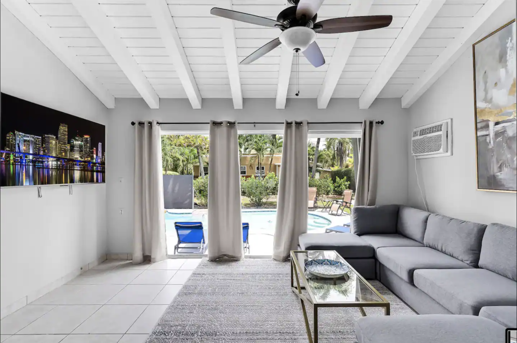 ☀️Den: Separate Den space with a large flat-screen TV, leading directly to the pool area.