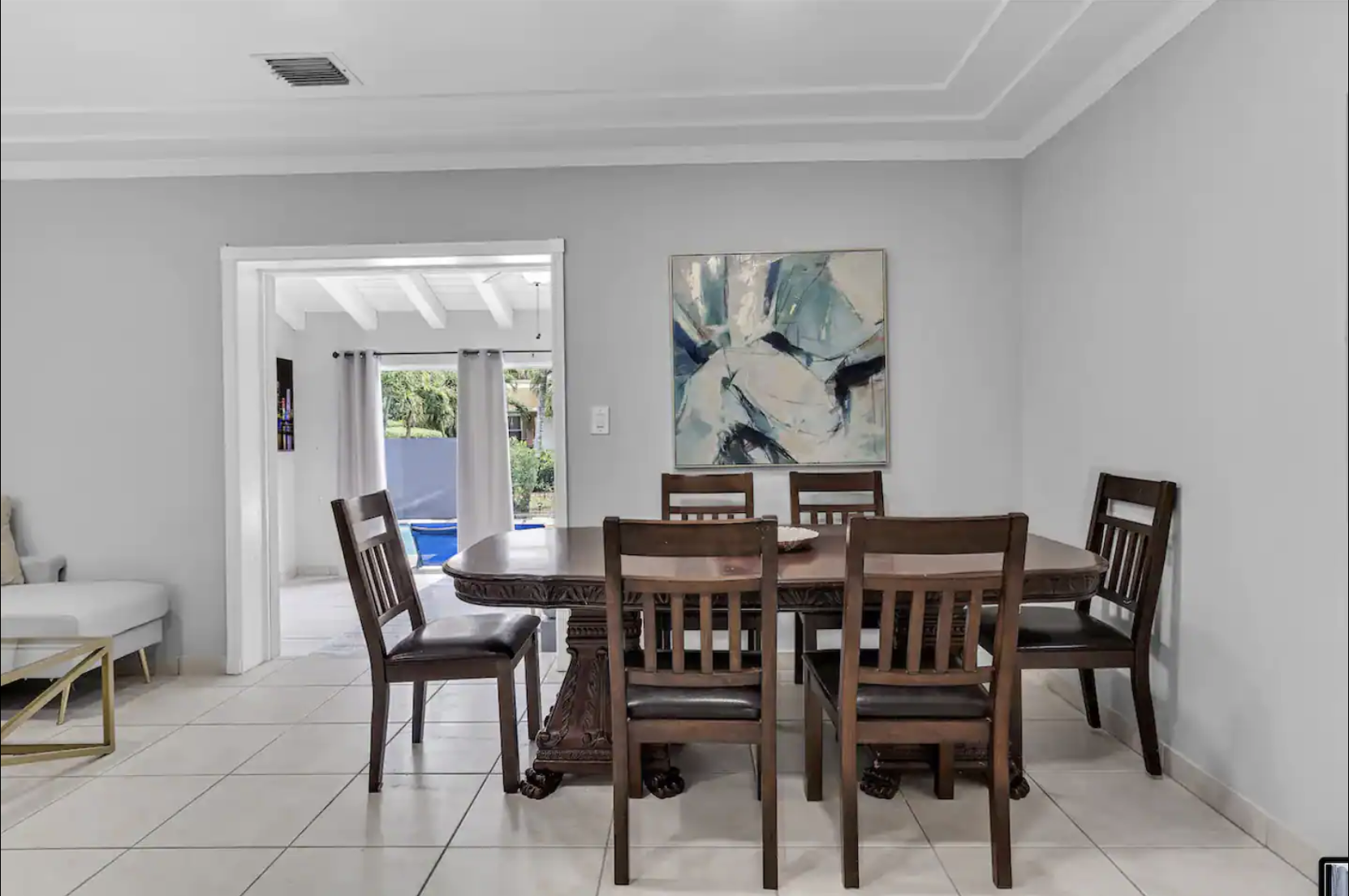 ☀️Dining: Dining table that seats six, perfect for family gatherings.