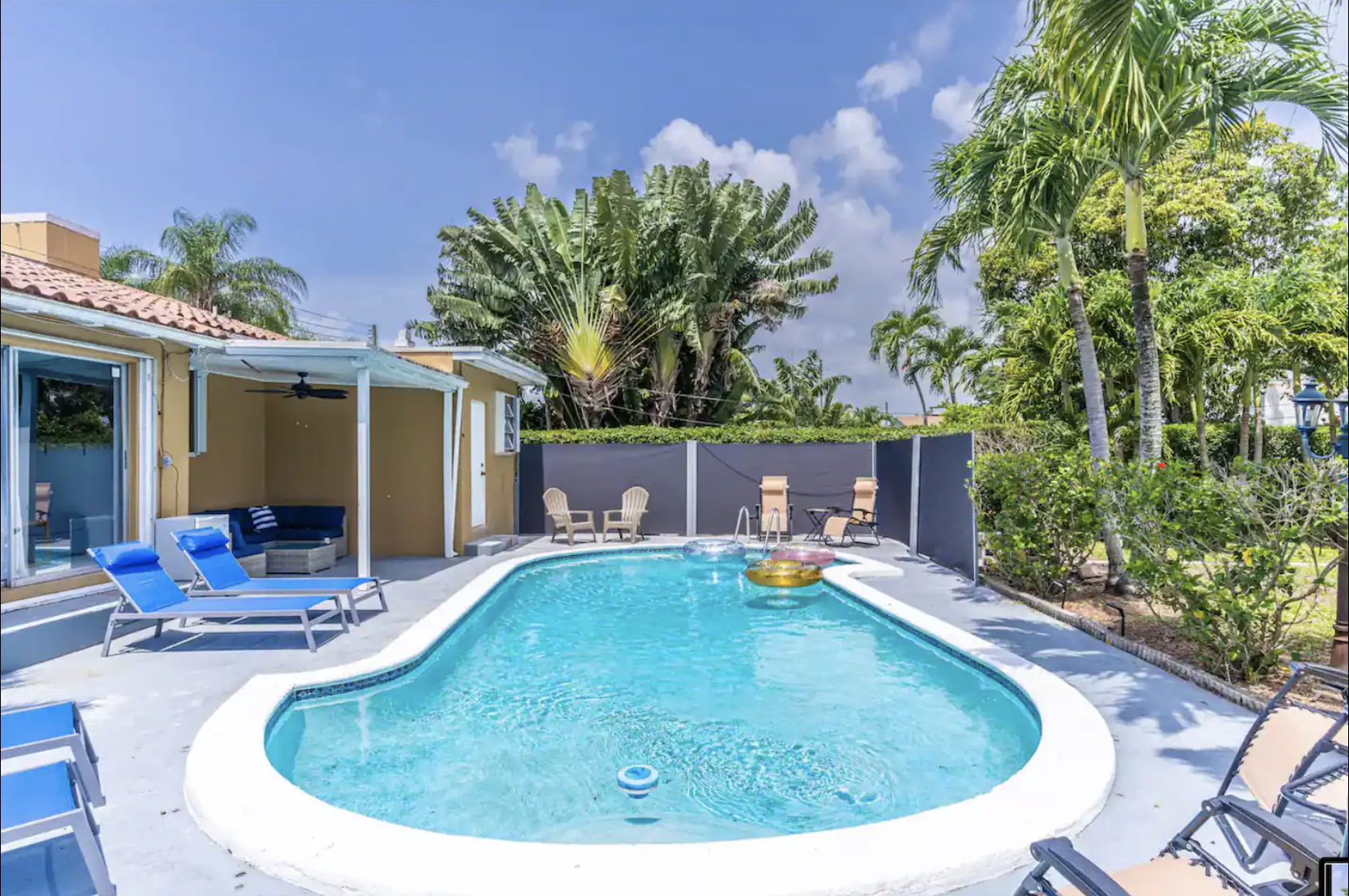 Immerse in Miami's charm from our 4BR/2BA home in the distinguished Miami Shores, close to the Country Club. Hosting 10 with 2 King, 1 Queen, and a double room with 2 Queens. Enjoy Netflix on flat-screen TVs, high-speed WiFi, a sparkling pool, and a furnished covered patio. Benefit from on-site laundry and parking for 3 cars. Two separate studios occupied by long-term tenants ensure your privacy.
