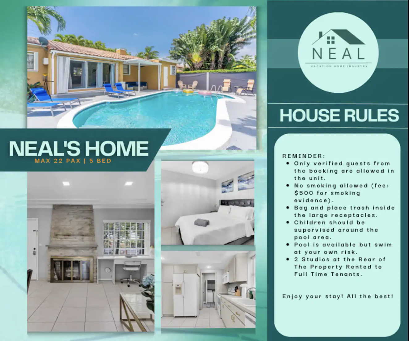 "This is an amazing house, all the amenities that it has made us feel more like home, excellent distribution, amazing pool, and the outdoor space was perfect for our games and drinks."