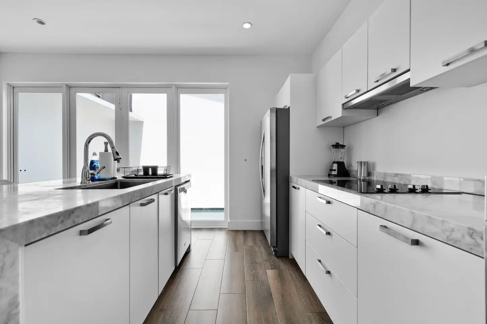 ☀️ Gourmet Kitchen: Fully equipped with modern appliances and Carrera marble countertops.