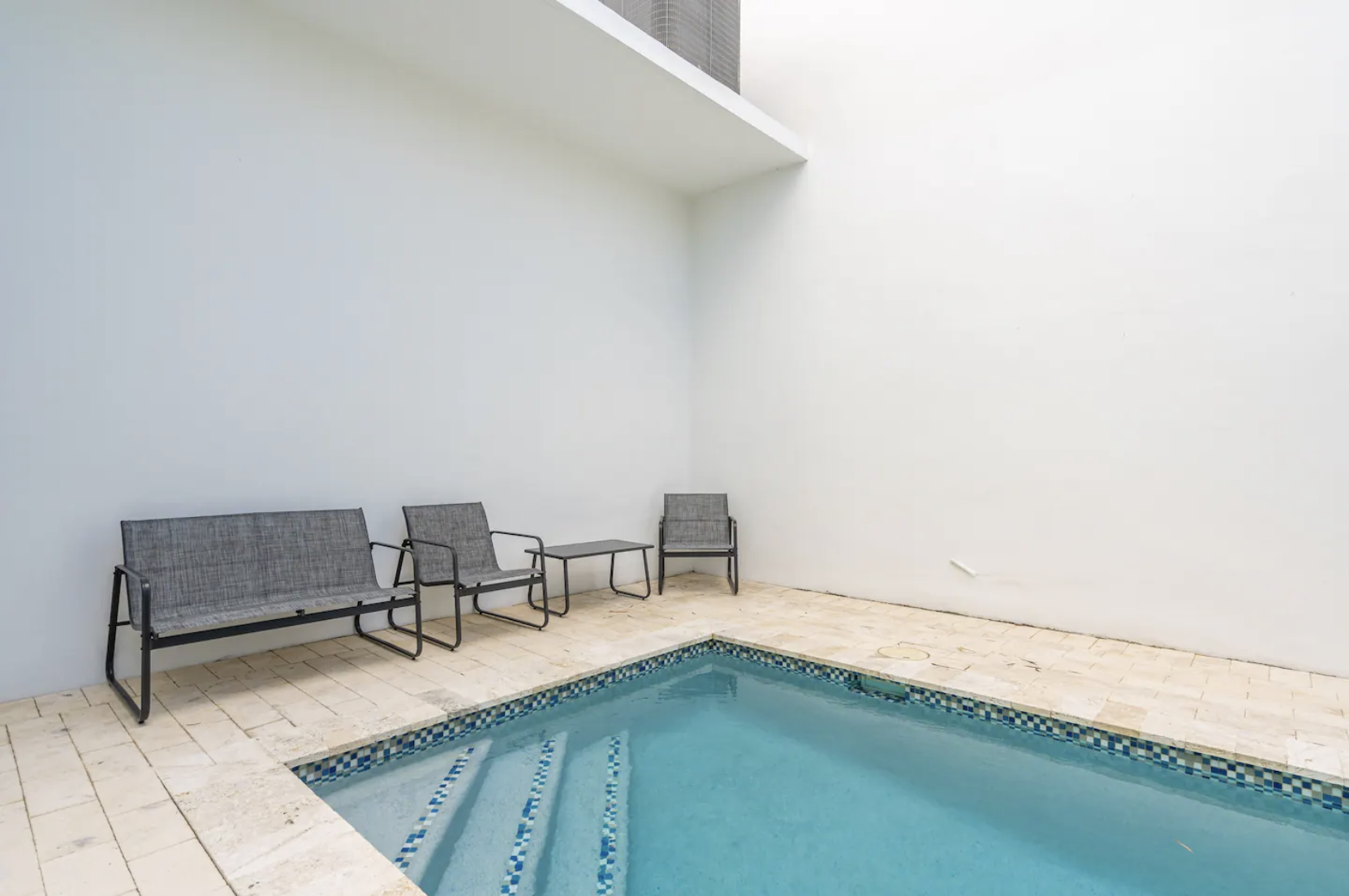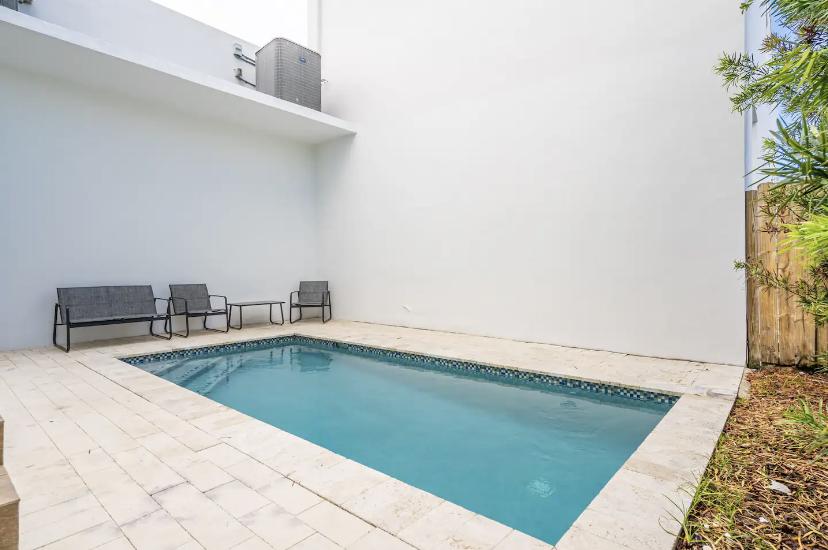 Step out into your private, palm-fringed pool area—your own oasis in the midst of Miami. Sun loungers are set up for those sunny Miami days when all you want to do is bask in the warmth. The pool is well-maintained, offering a cooling respite from the Miami heat.