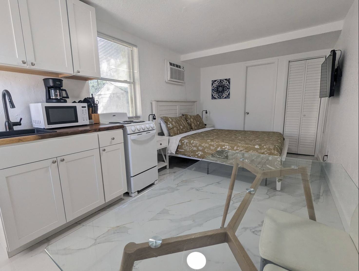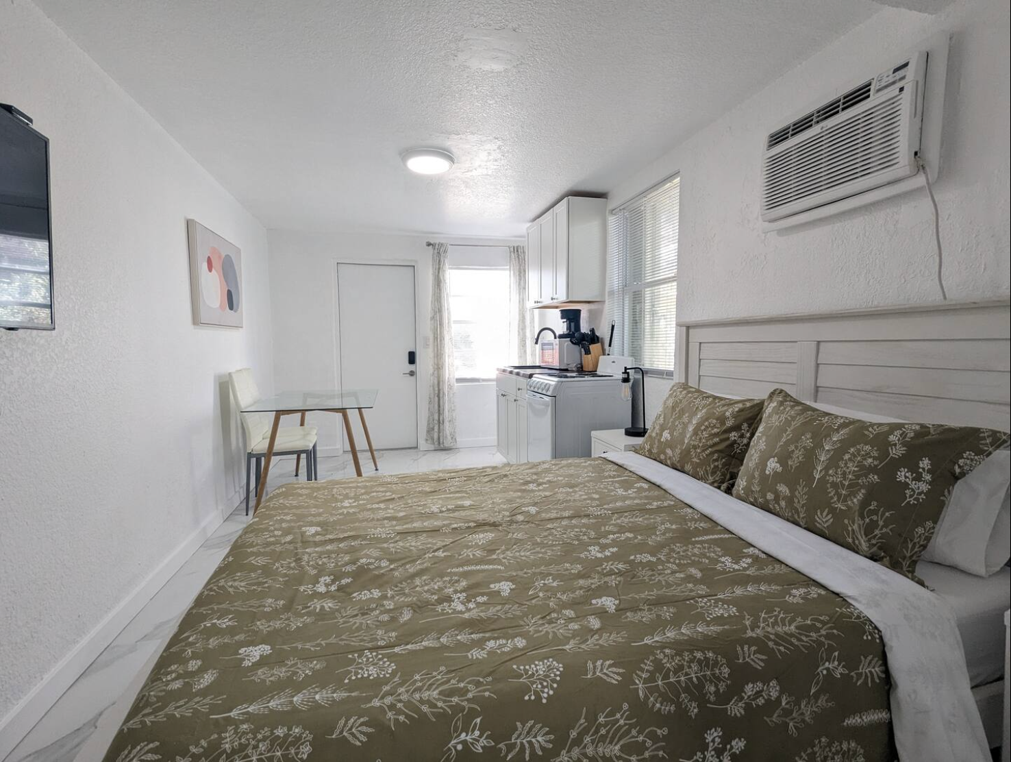 Experience the allure of Miami in our chic studio, steps from Calle Ocho's buzz. Featuring a plush queen bed, 43" TV, fast Wi-Fi, and secure keypad entry, this studio is your perfect urban getaway. Enjoy a well-equipped kitchen, elegant white and gold décor, and a luxurious bathroom. A soon-to-be-ready pool in the backyard promises added delight. Book now for an unforgettable stay!