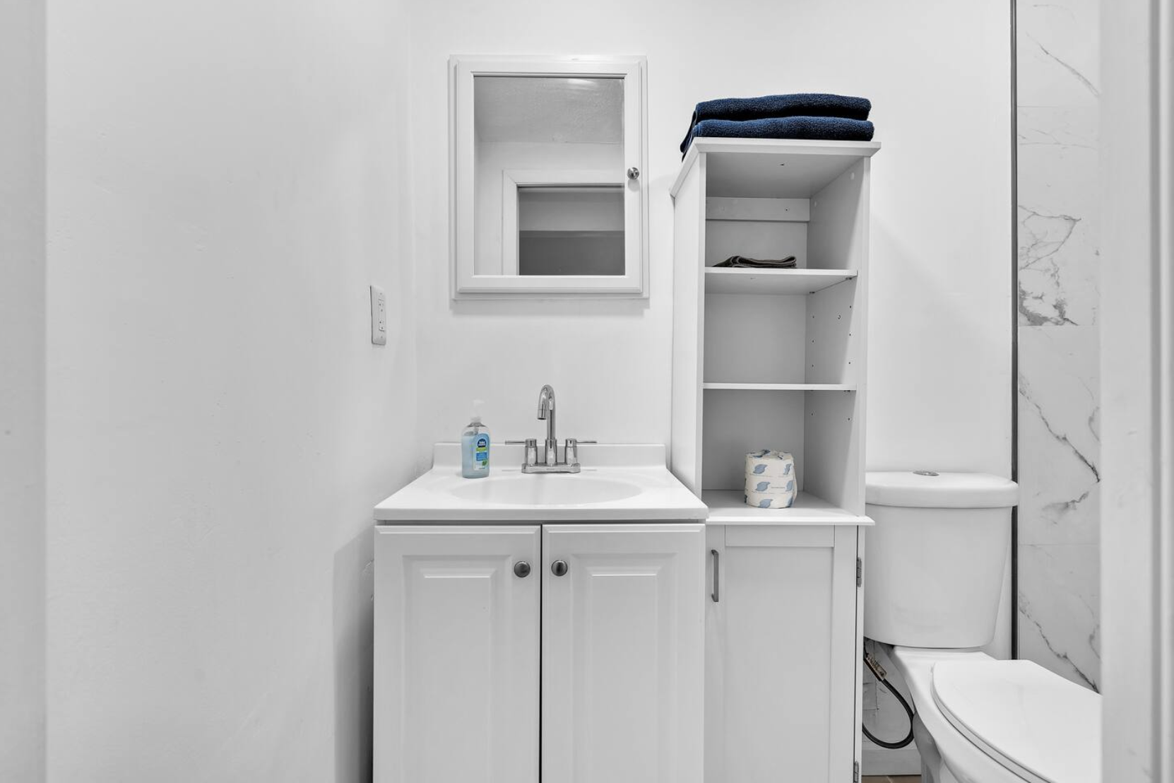 Full bathroom with a refreshing shower, stocked with fresh towels and essential toiletries.