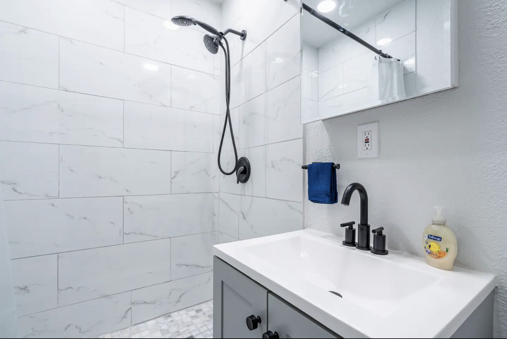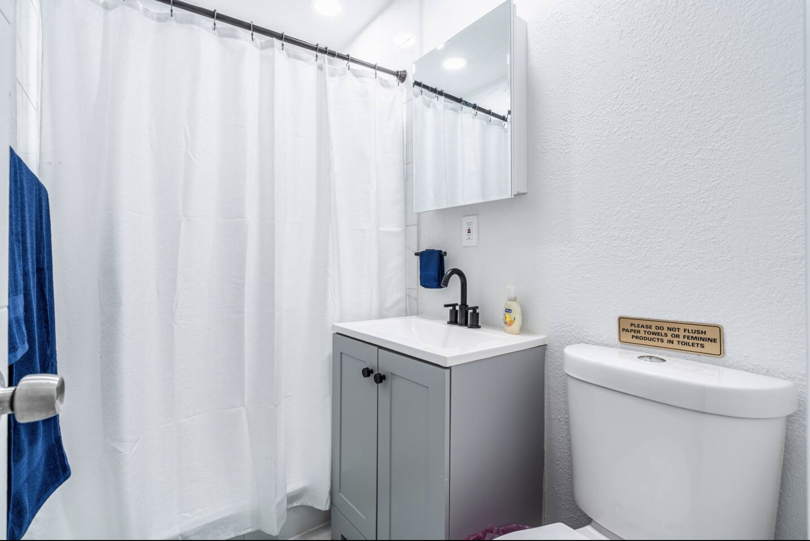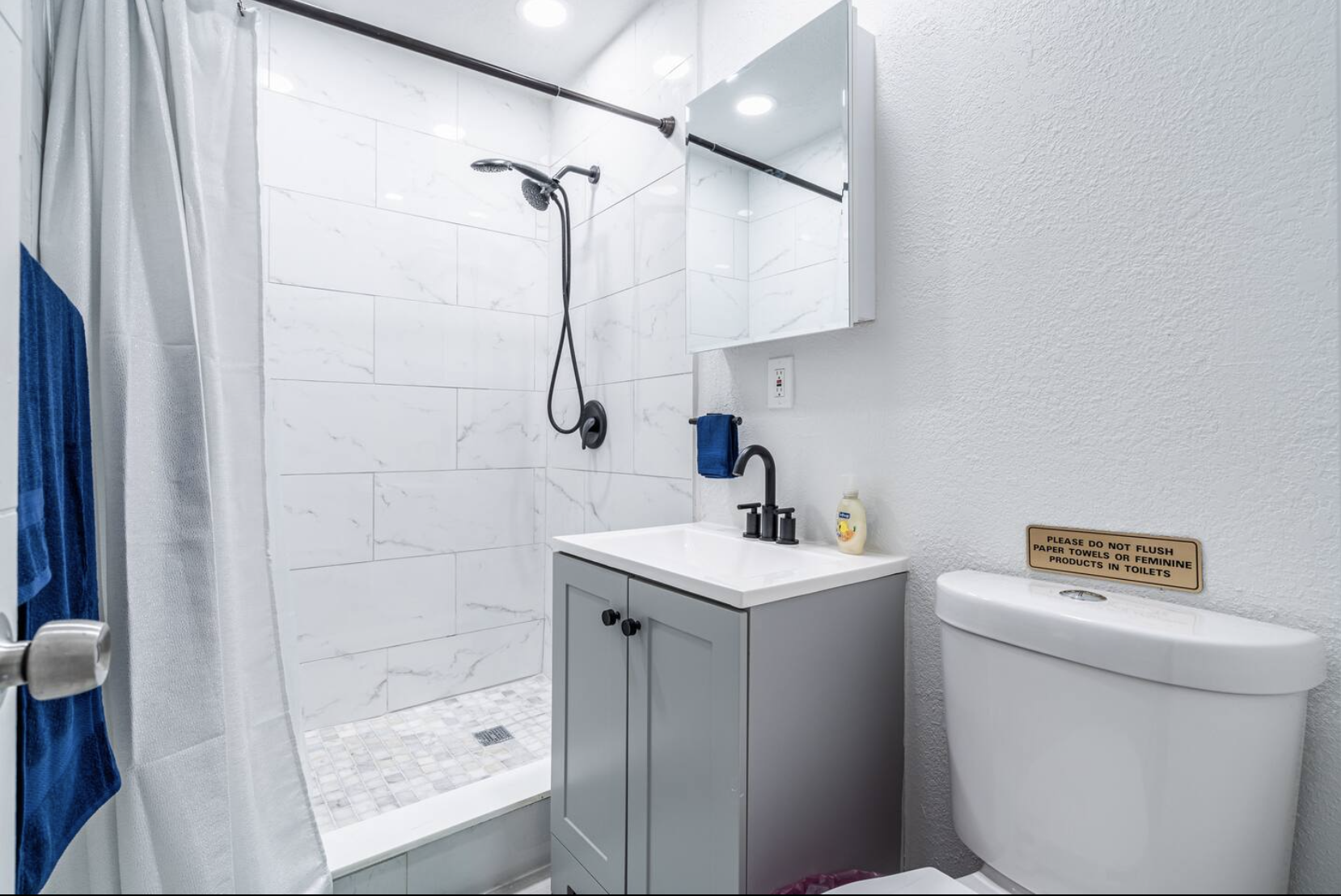 The full bathroom with a shower is provided for your comfort.