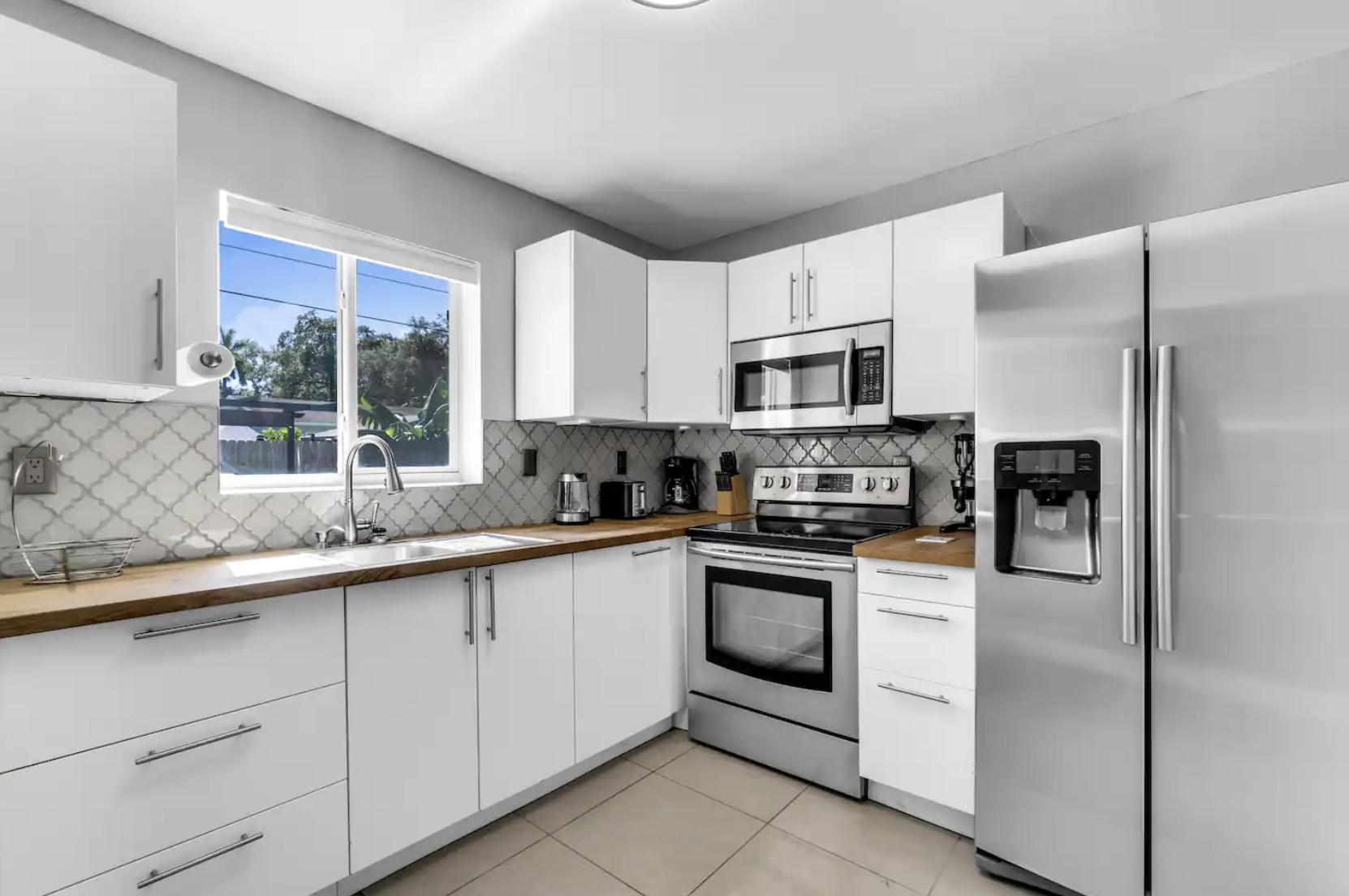 Immerse yourself in comfort and luxury at this stunning 4-bedroom home in Miami Shores. Just 10 minutes west of the beach, this spacious abode is the perfect base for exploring all that Miami has to offer. With two king bedrooms and two queen bedrooms, there's plenty of room for everyone to spread out and relax. The saltwater pool is the perfect place to cool off on a hot day. The patio is the perfect spot for al fresco dining or simply relaxing with a good book. High-speed Wi-Fi throughout the property ensures you can stay connected even while you're on vacation.