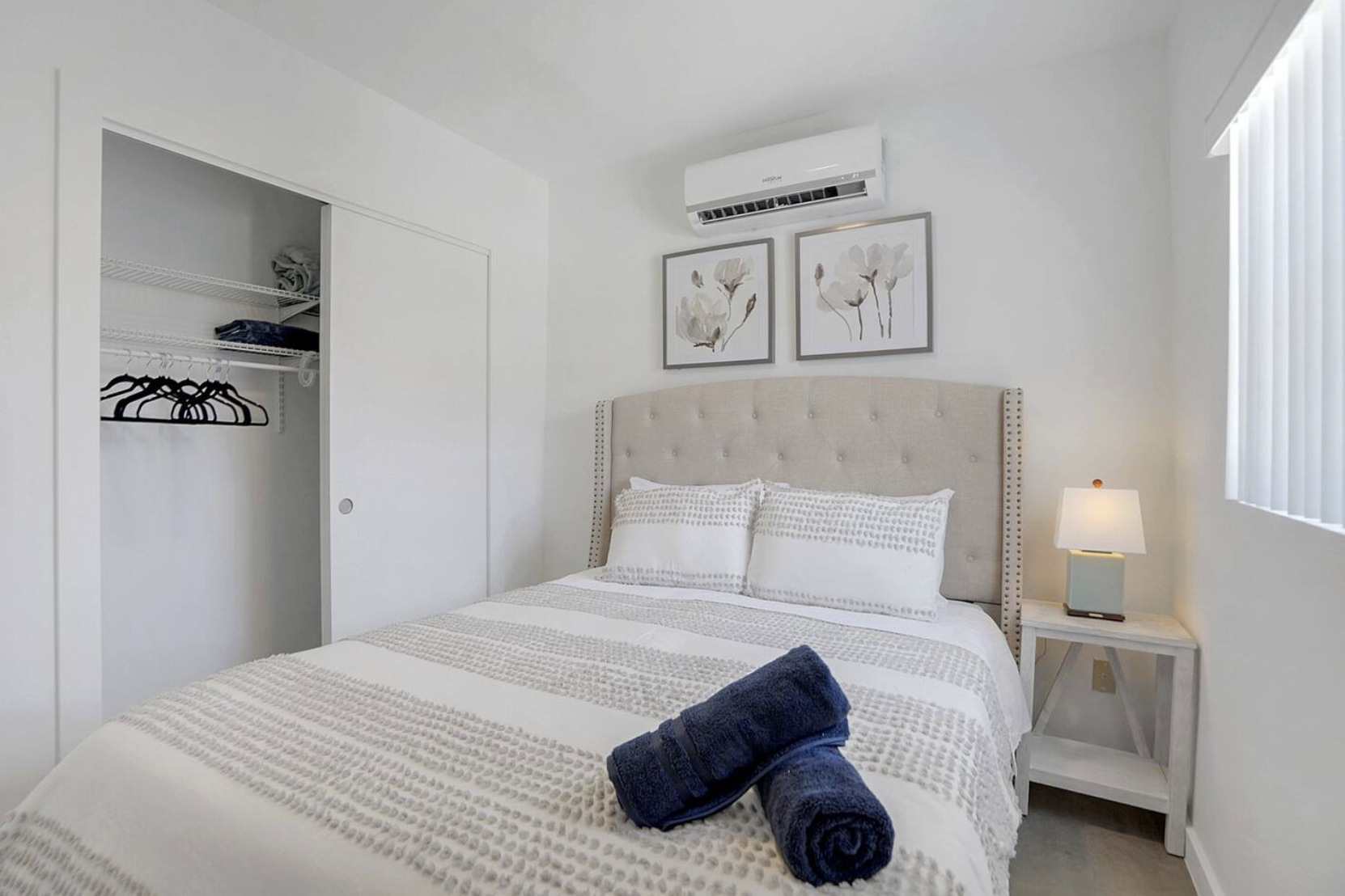 Queen bed in the bedroom providing a restful retreat with a spacious closet for storage.