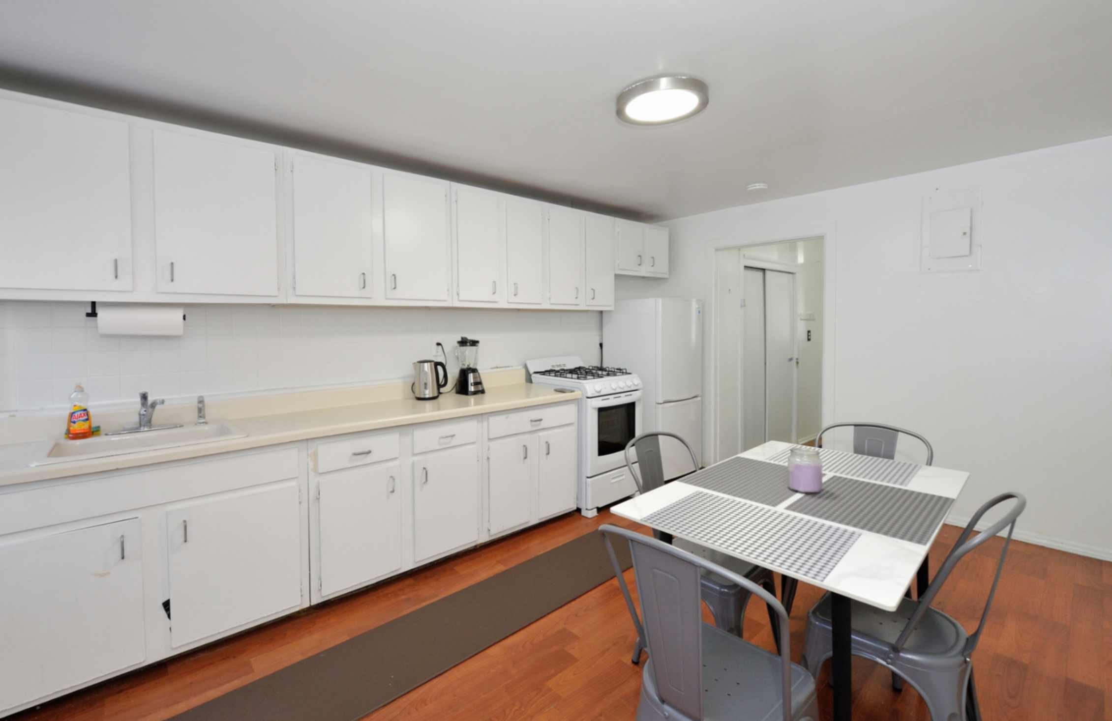 KITCHEN & LOUNGE The expansive kitchen is fully equipped for all your culinary adventures. With a dining table for four and all the necessary appliances and utensils, cooking and dining are a breeze. The cozy living room, complete with a comfortable couch, is perfect for relaxing after a day of exploring the city.