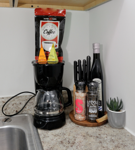 The studio includes a comfortable sleeping area with an optional air mattress for a third person, ensuring flexibility in accommodation.