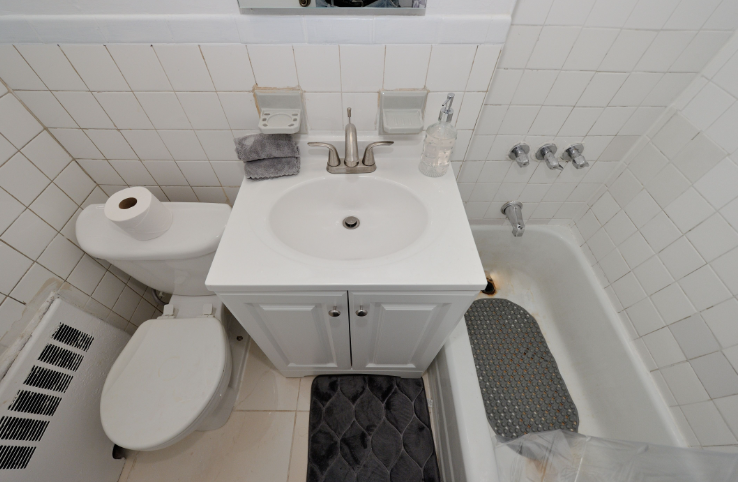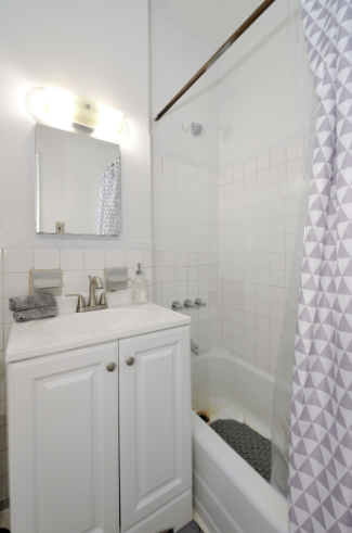 A clean and well-appointed bathroom completes this charming studio, offering convenience and comfort.