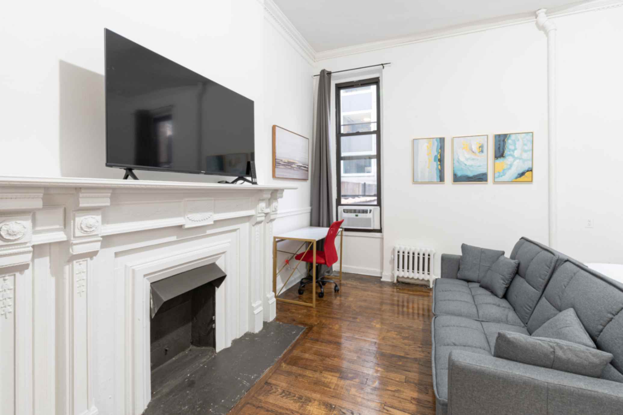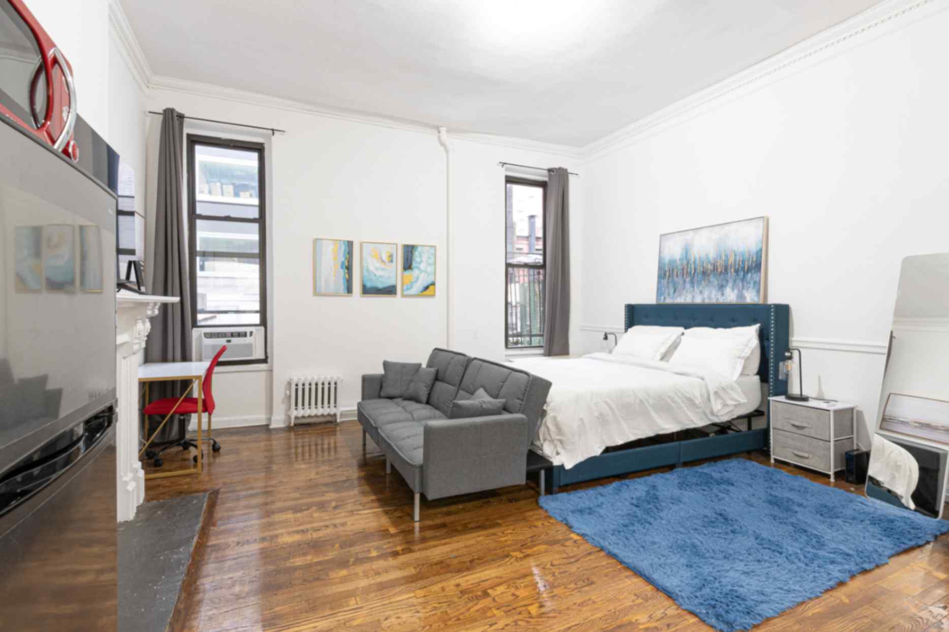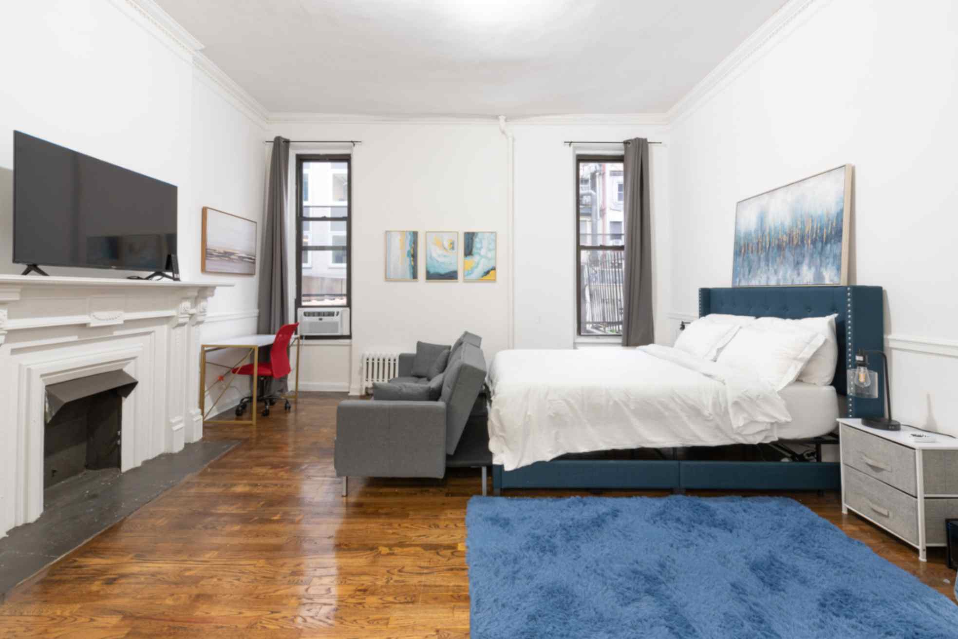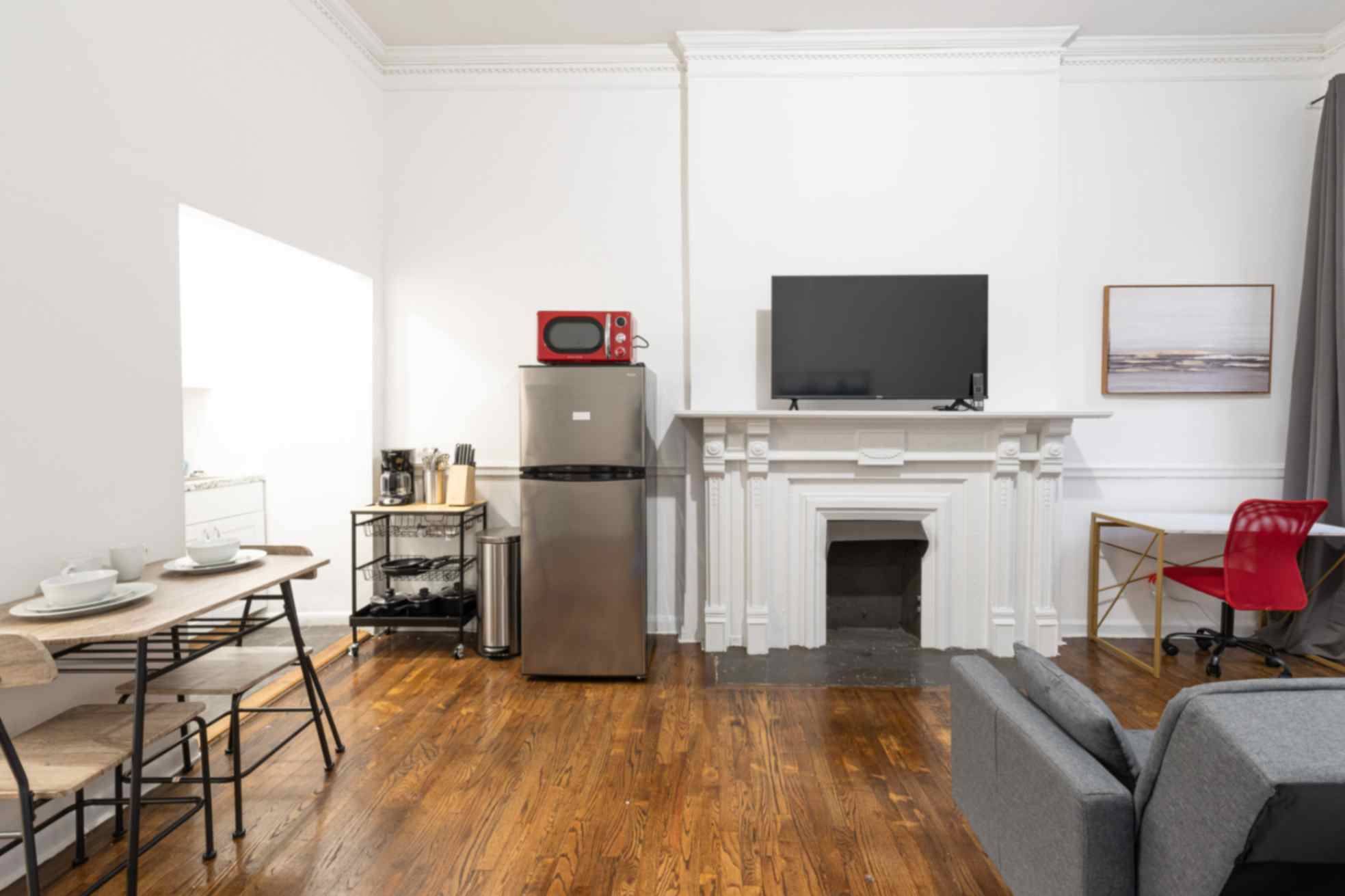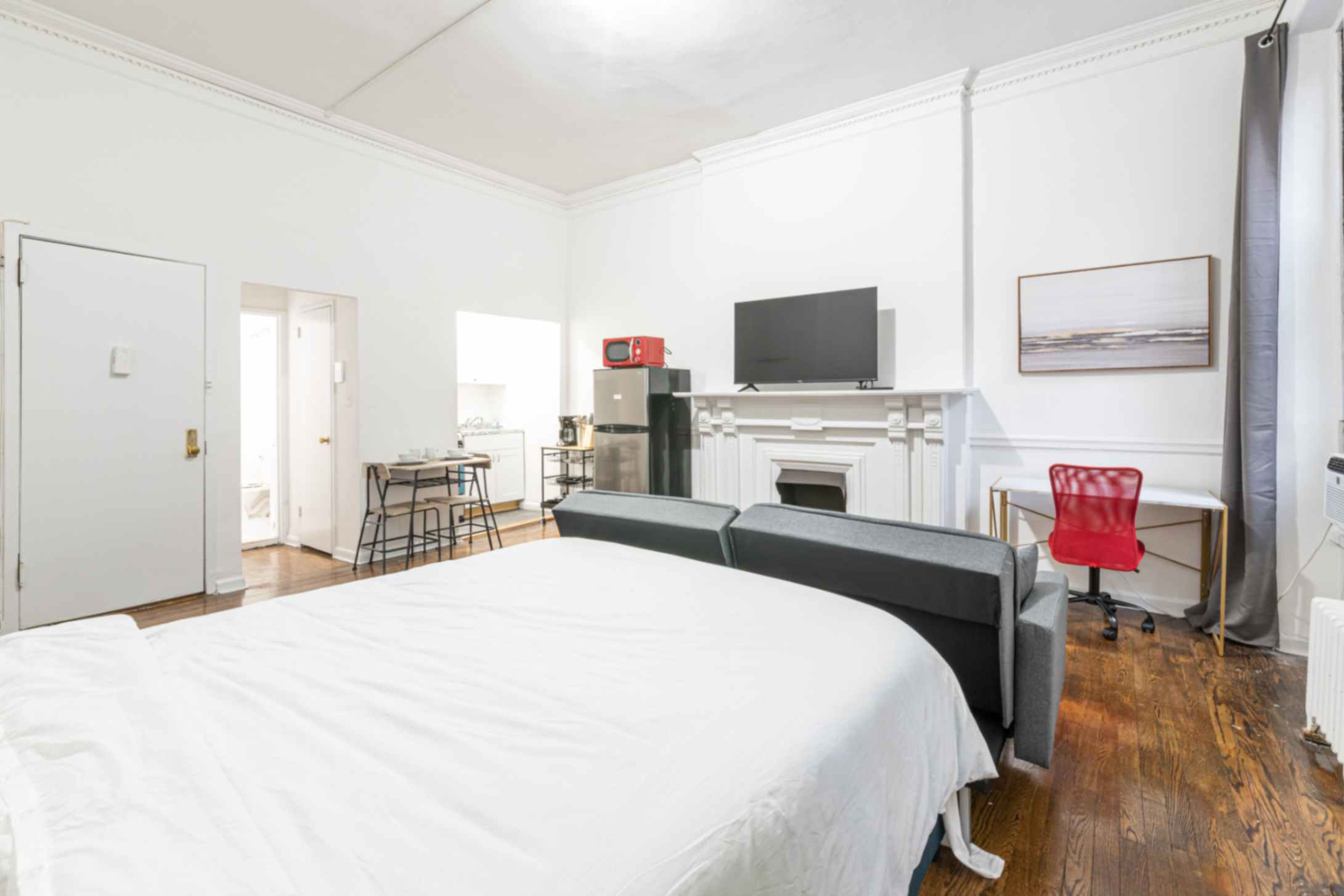 Stylish studio in Midtown East, NYC, near Grand Central Terminal and Rockefeller Center. Features a queen bed, sofa bed, functional desk, and dining space. Book now for a convenient and comfortable stay in the heart of New York City!