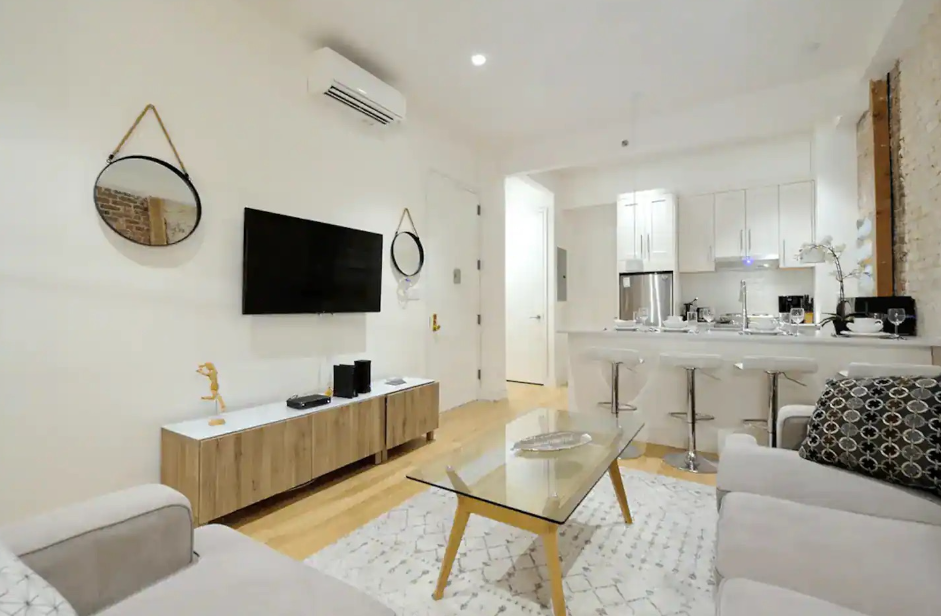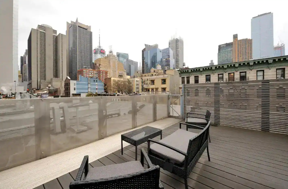 "This stunning apartment offers a truly exceptional experience. Its prime location near Times Square and a bunch of restaurants was a great option for our entertainment. The highlight of this residence is undoubtedly the amazing outdoor space, providing amazing views of New York City's iconic skyline. Inside, the living room and kitchen were adorned with luxurious details that made us feel clean."